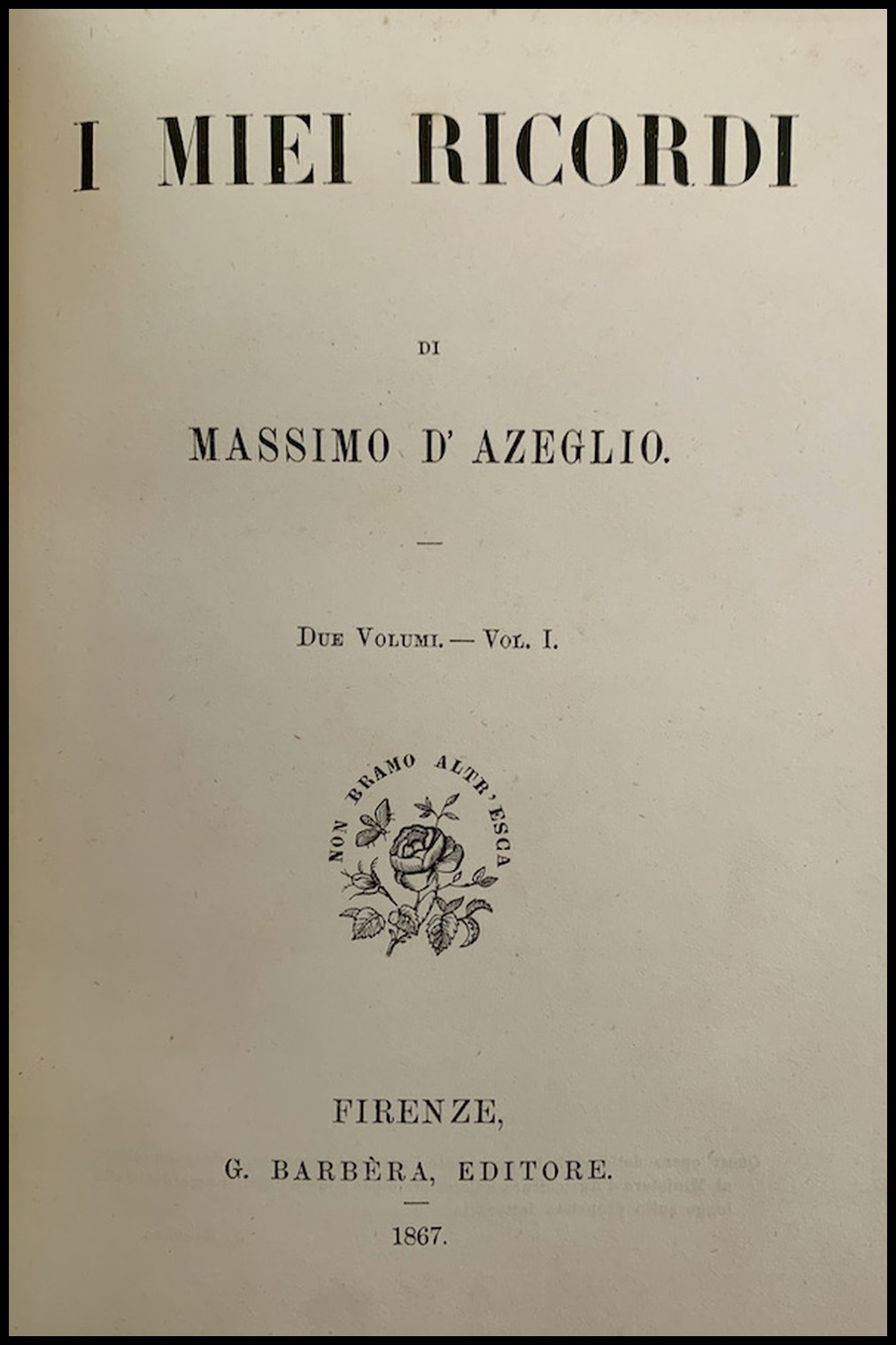 MASSIMO D’AZEGLIO I miei ricordi. Firenze 1867 In-8 19x13 cm Due volumi....