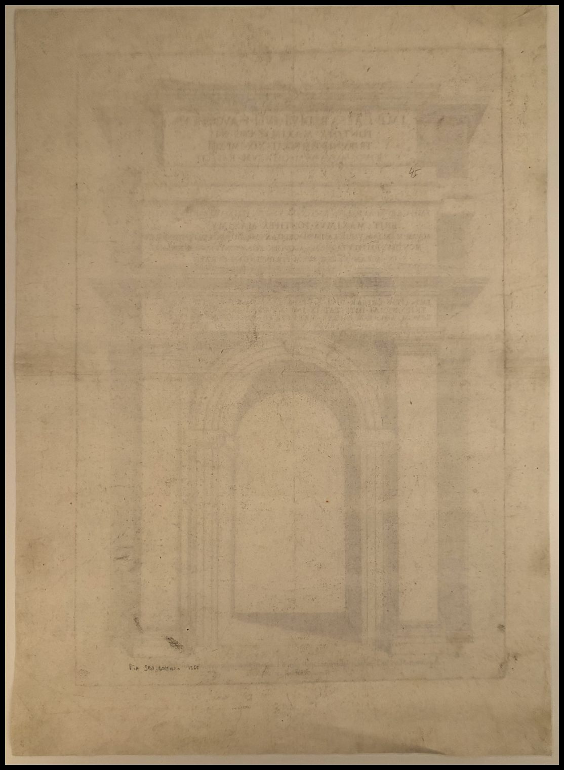 Raffigurazione della Porta Tiburtina a Roma, parte di Speculum Romanae Magnificentiae. Hulsen 23a