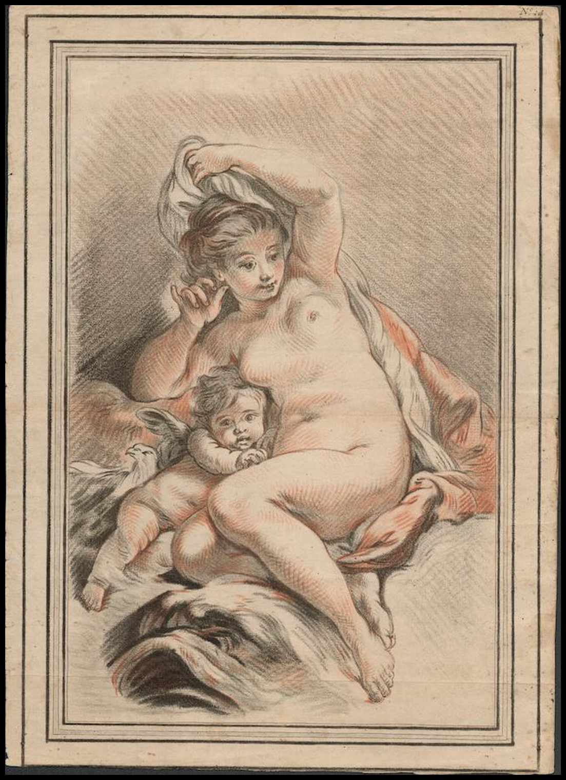 Anonimo incisore da François Boucher (1703-1770) Venere e Amore Litografia,...