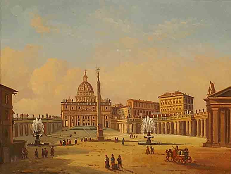 Maestro italiano della fine del XIX secolo, "Veduta di Piazza San Pietro con...
