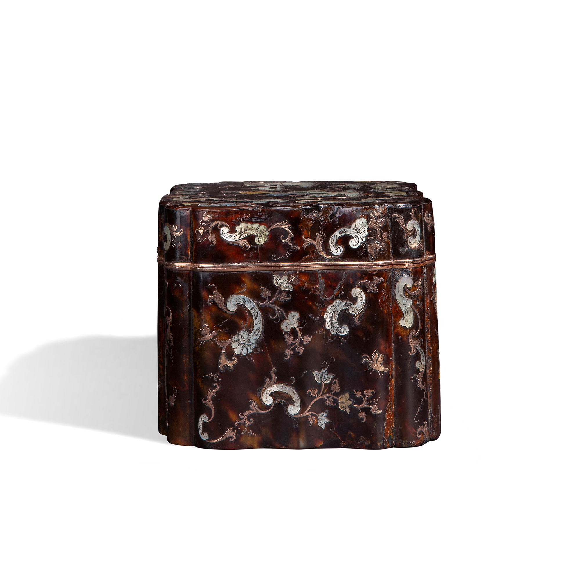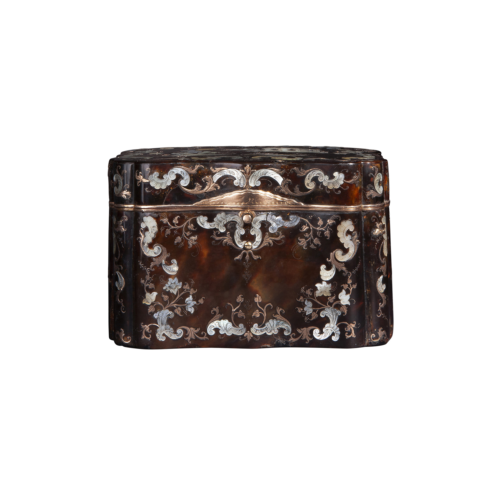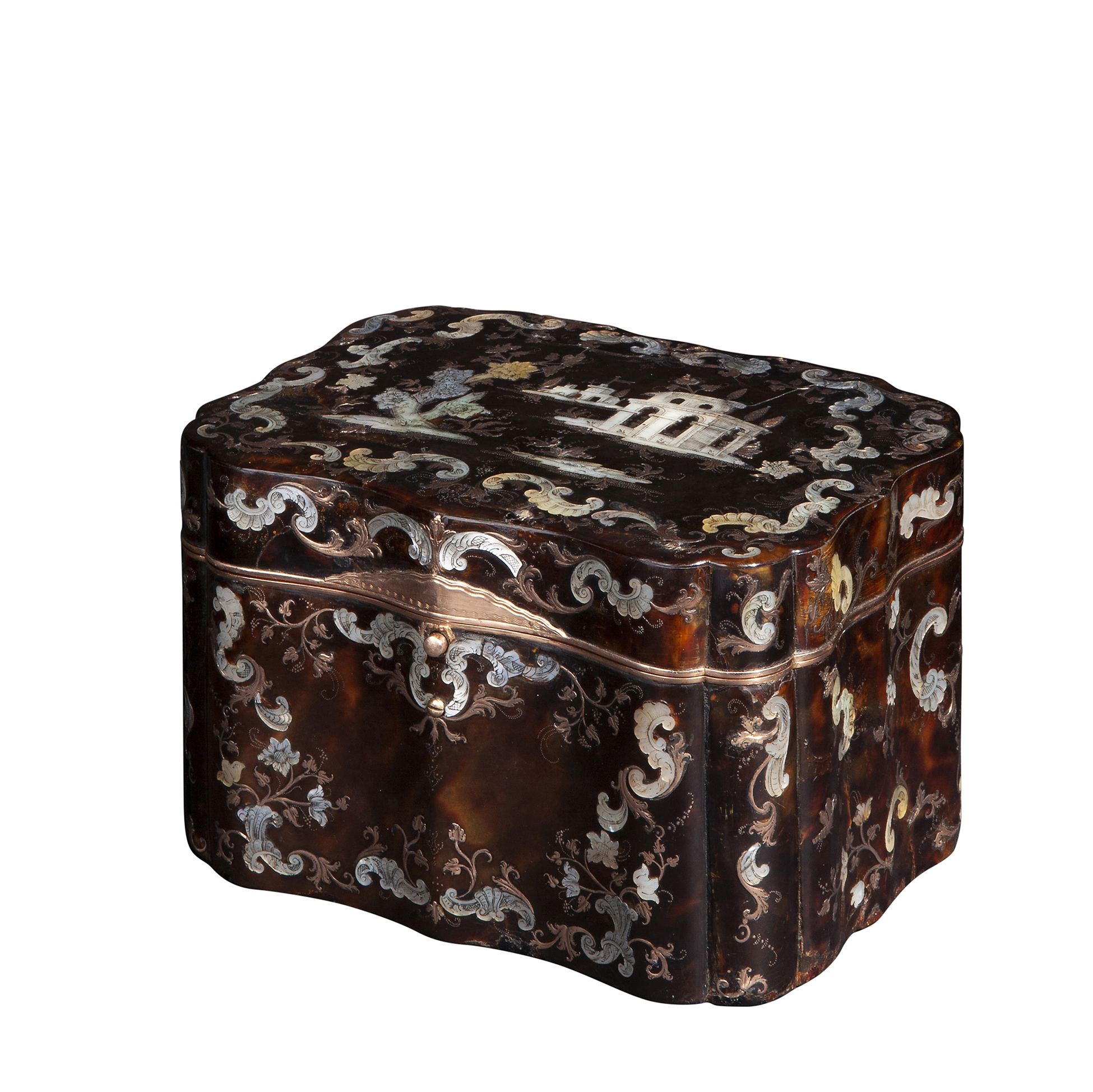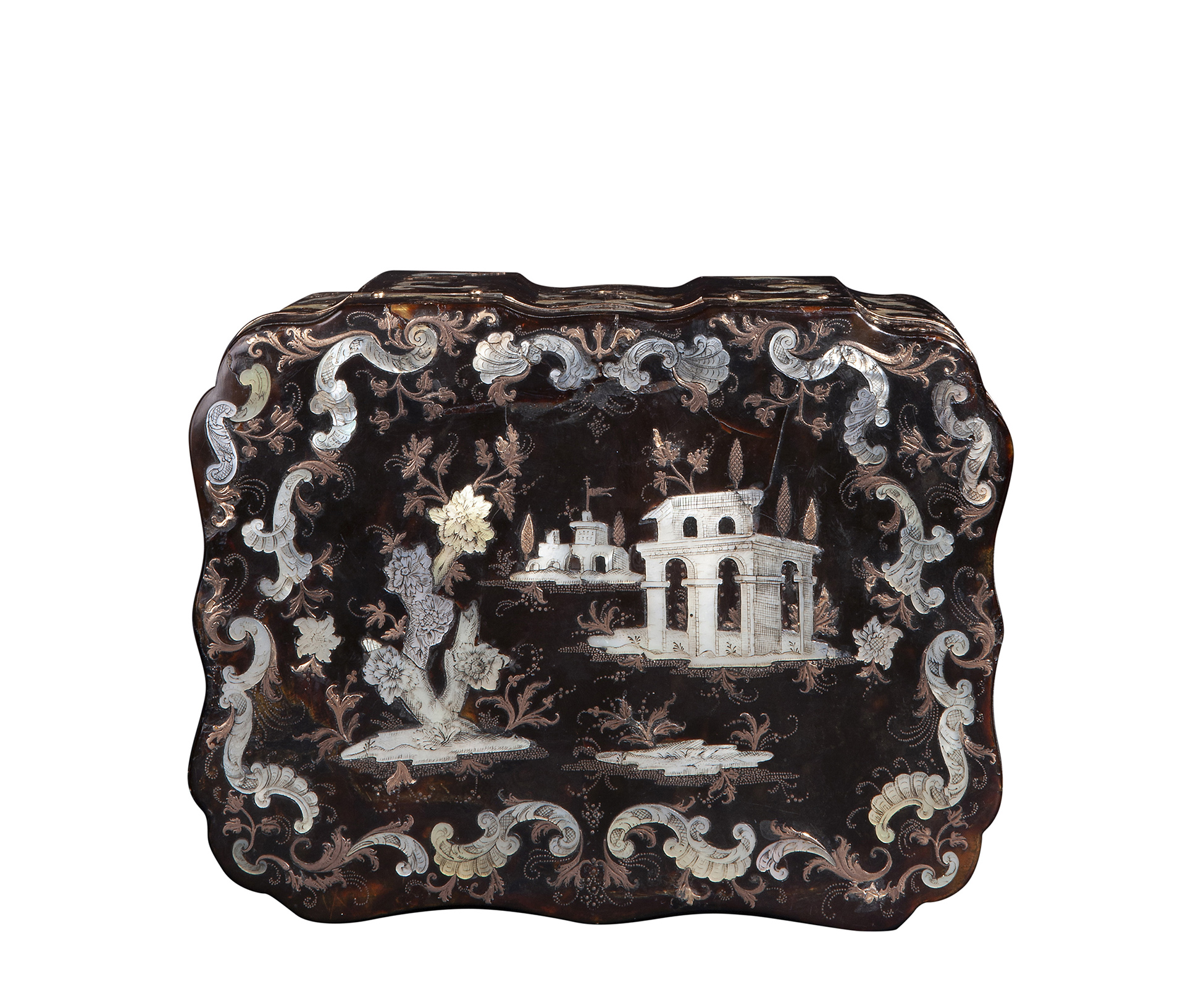 Lot 57 | Rara scatola in tartaruga intarsiata in oro rosa e madreperla, Sarao circa 1740