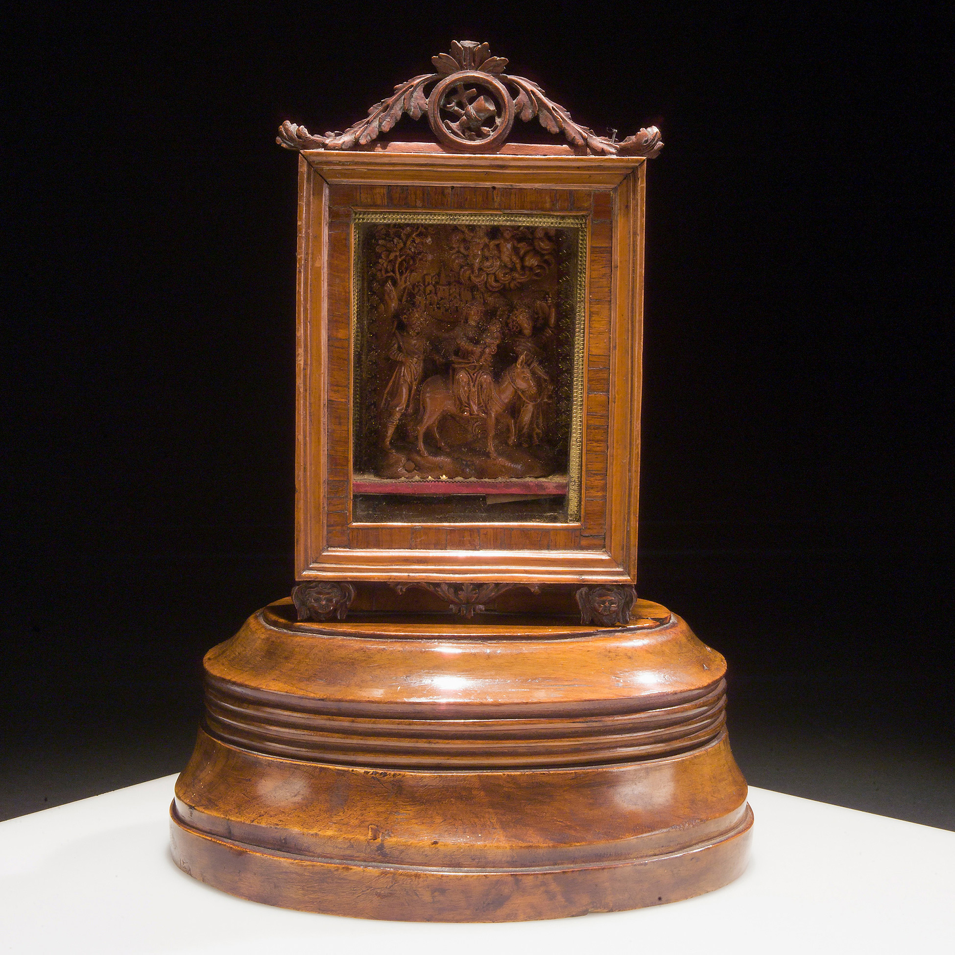 Altorilievo in bosso con teca in legno, Veneto XVII secolo