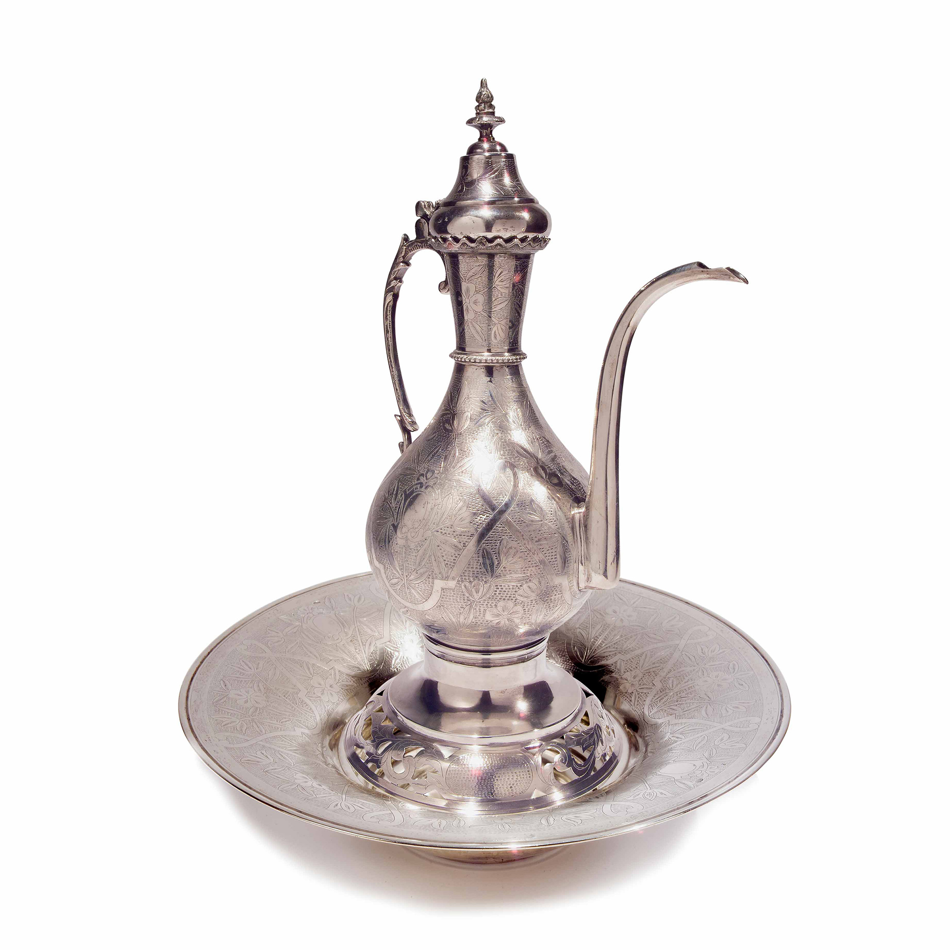 Caffettiera con braciere e bacile in argento, Egitto XIX secolo