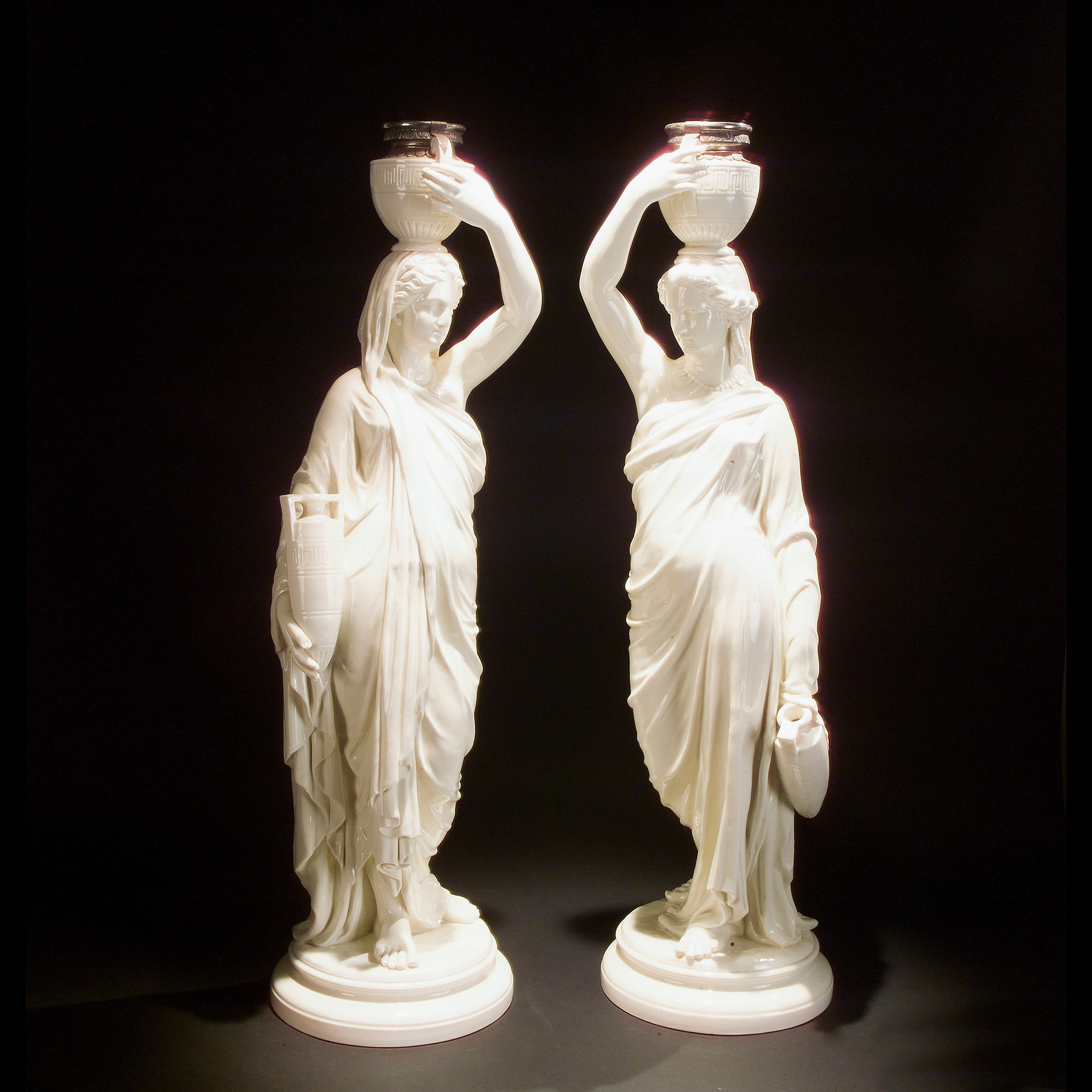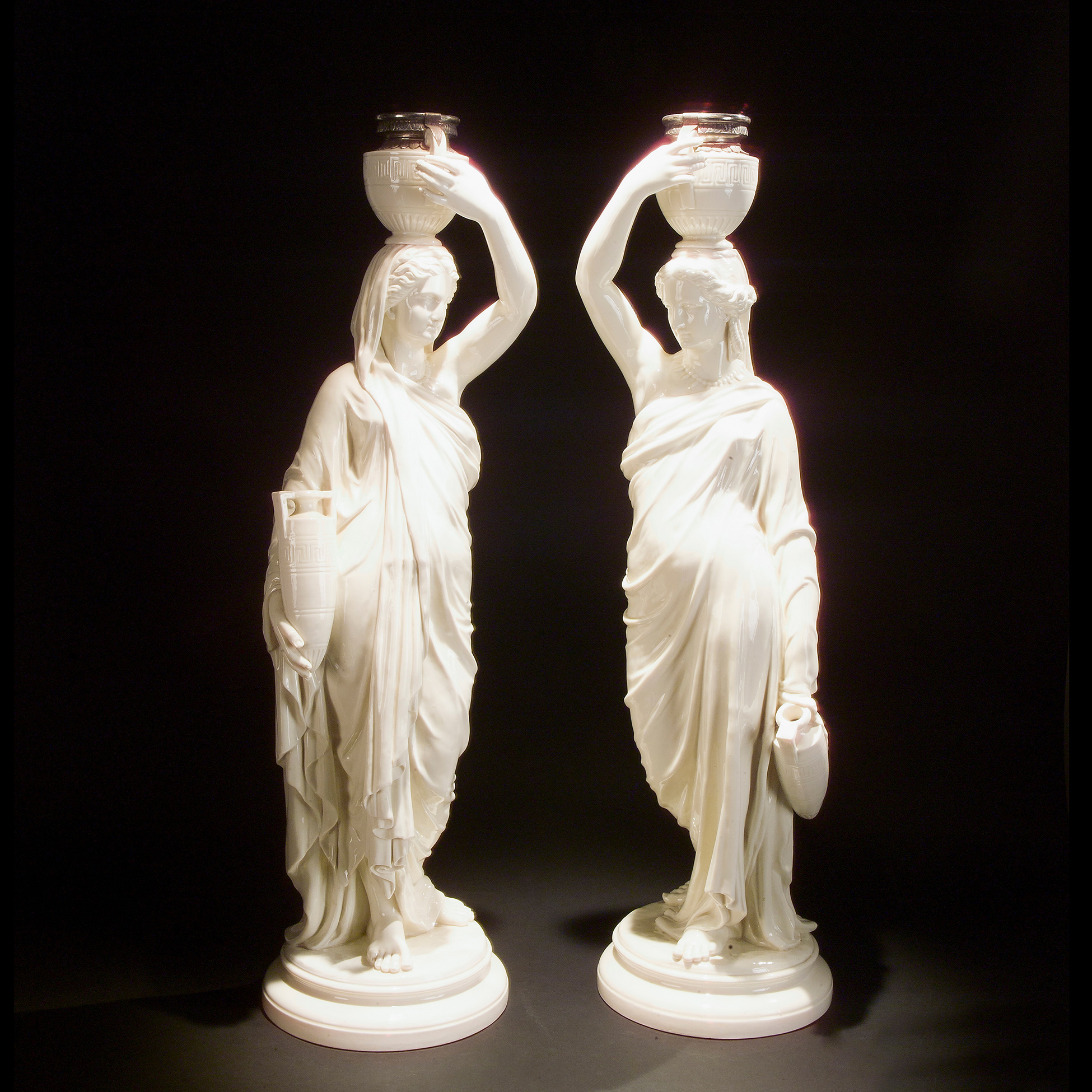 Coppia di portalampade in ceramica, Wedgwood XIX secolo