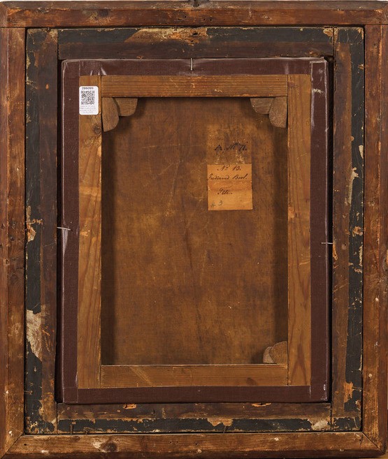 reca al retro etichetta con antica attribuzione e numeri di inventario di vecchia collezione, olio su tela, Cm 37,5X46