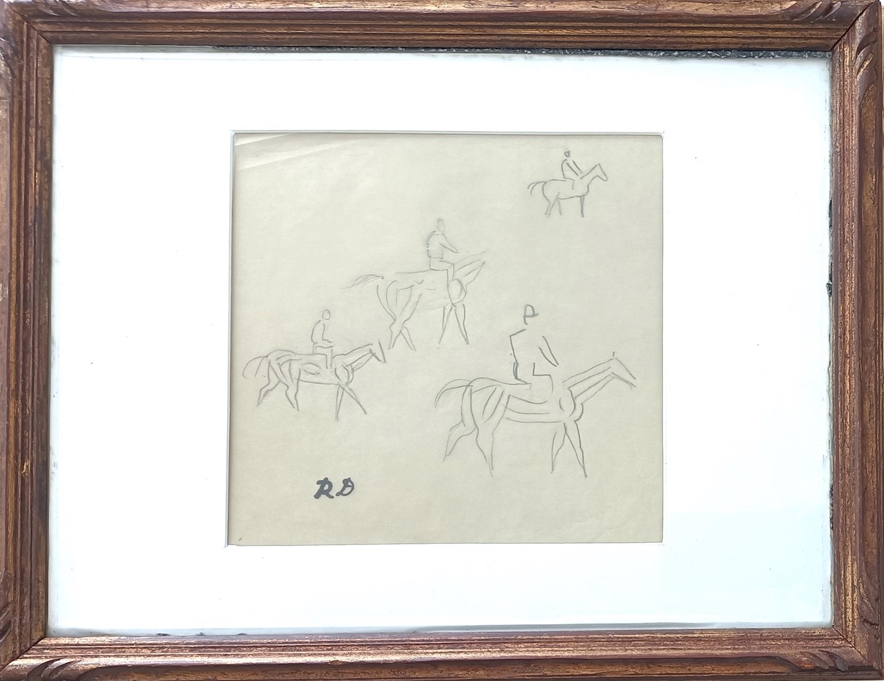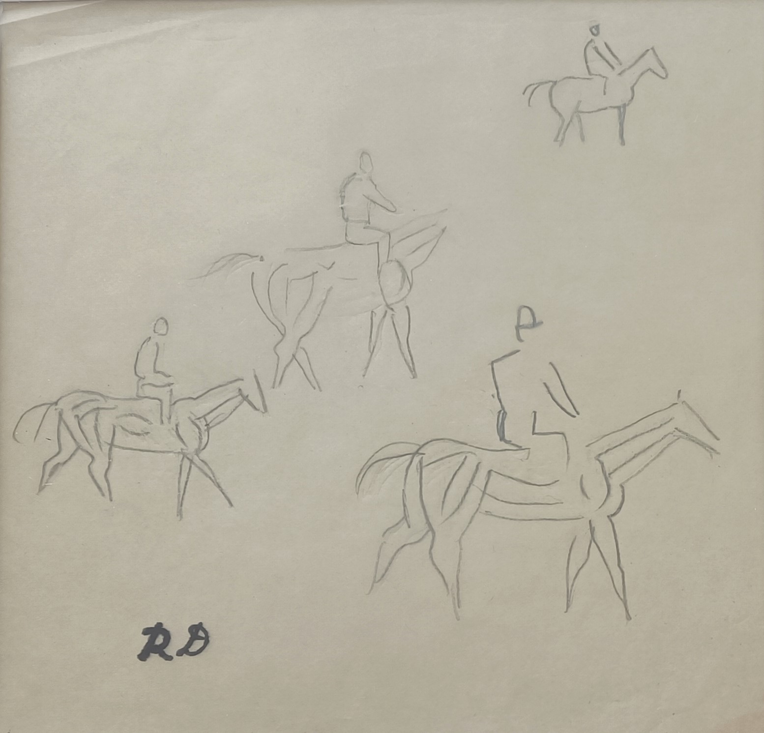 "Horses". Drawing on paper. Size 17 x 25 cm. Inscribed RD lower left. Fanny Guillon-Laffaille and David Guillon-Laffaille verbally confirmed the authencitity.
