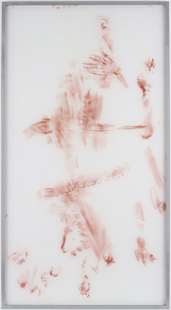 "Interfacing (mauve)". Oil on interfacing fabric. Executed in 2012. Size 175 x 96 cm. Framed. Provenance: Private Collection, the Netherlands