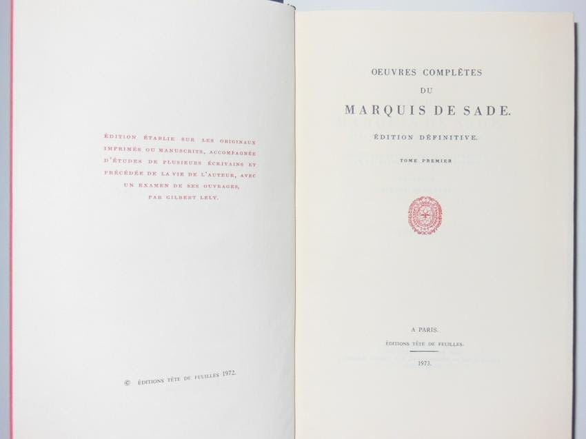 Oeuvres completes du Marquis de Sade