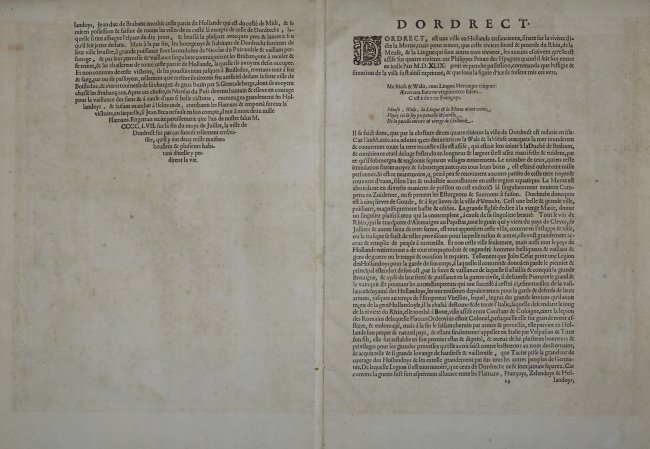 View from Dordrect on the Merwede, Dordracvm vulgo Dortt: Me Mosa, et Walis, cum Linga, Meruaqué cingunt, Aeternam Bataue virginis, ecce, fidem