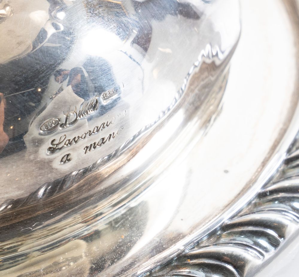 Sul bordo inferiore reca punzoni: 800, firma dell'argentiere, losanga locativa 240PD, lavorazione a mano.
