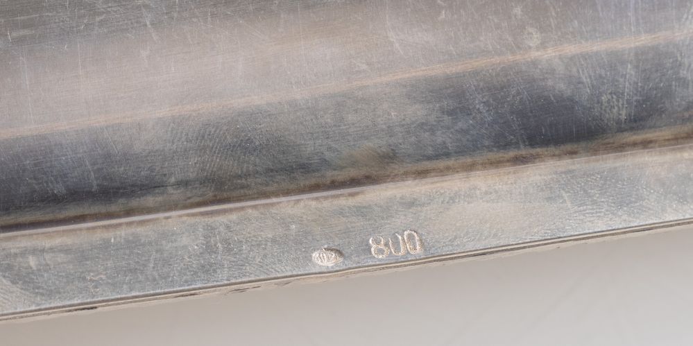 Sul bordo reca punzoni: 800 in campo libero e losanga locativa.