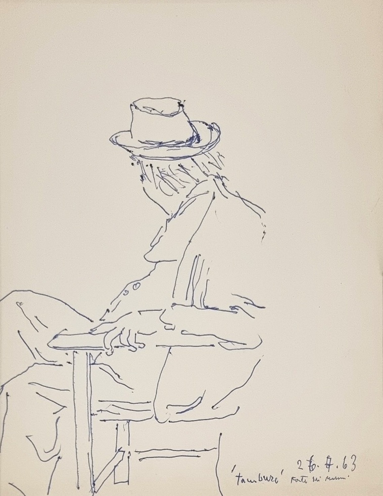TAMBURI ORFEO Jesi 1910 - Parigi 1994 "Carrà al forte" Penna su cartoncino cm 21x27 del 1963, corredata di passepartout. Firma, data e luogo sul fronte in basso a destra. Autentica su foto a cura del maestro.