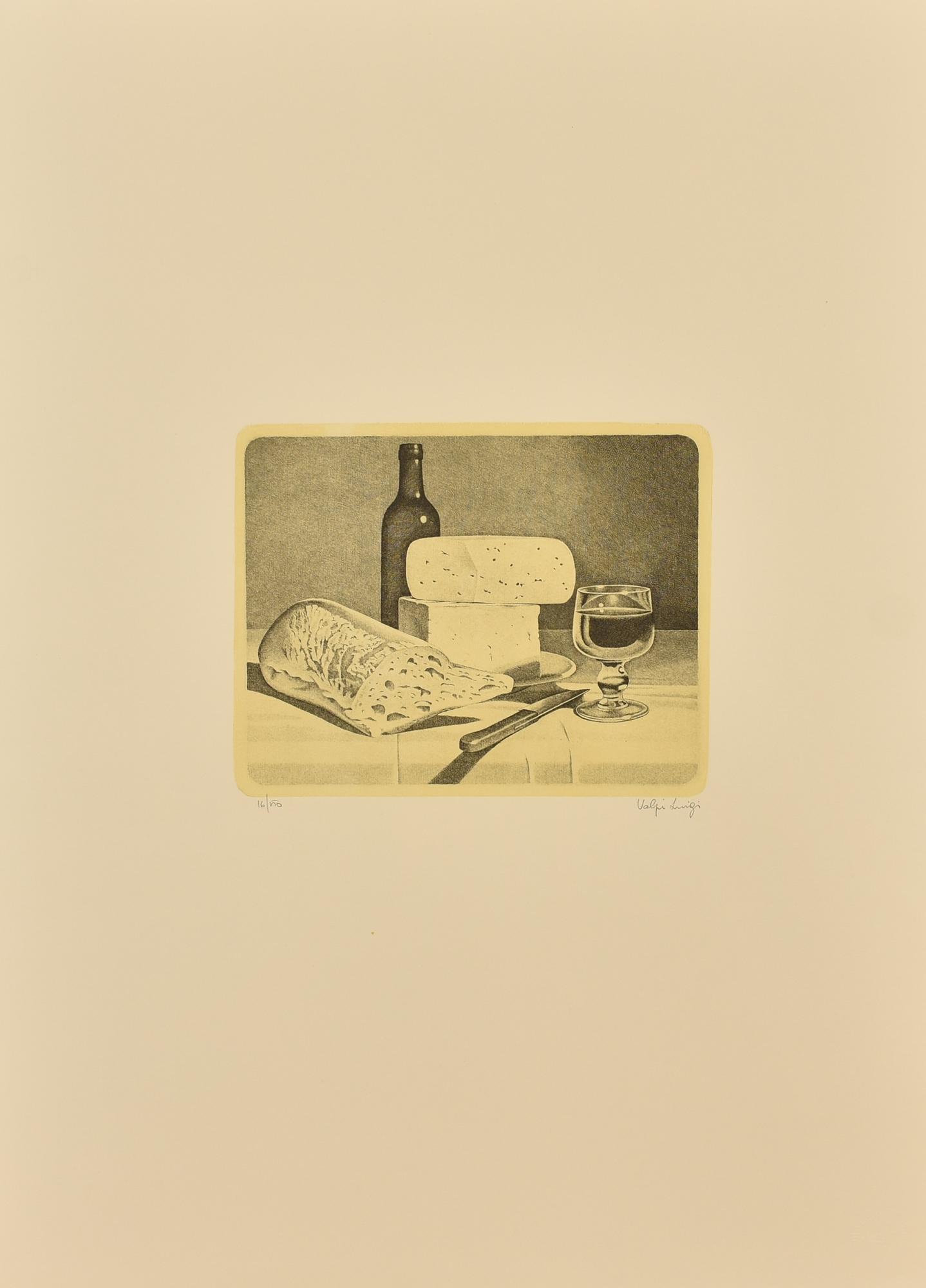 Luigi Volpi NATURA MORTA CON BICCHIERE DI VINO Incisione su carta, battuta cm...