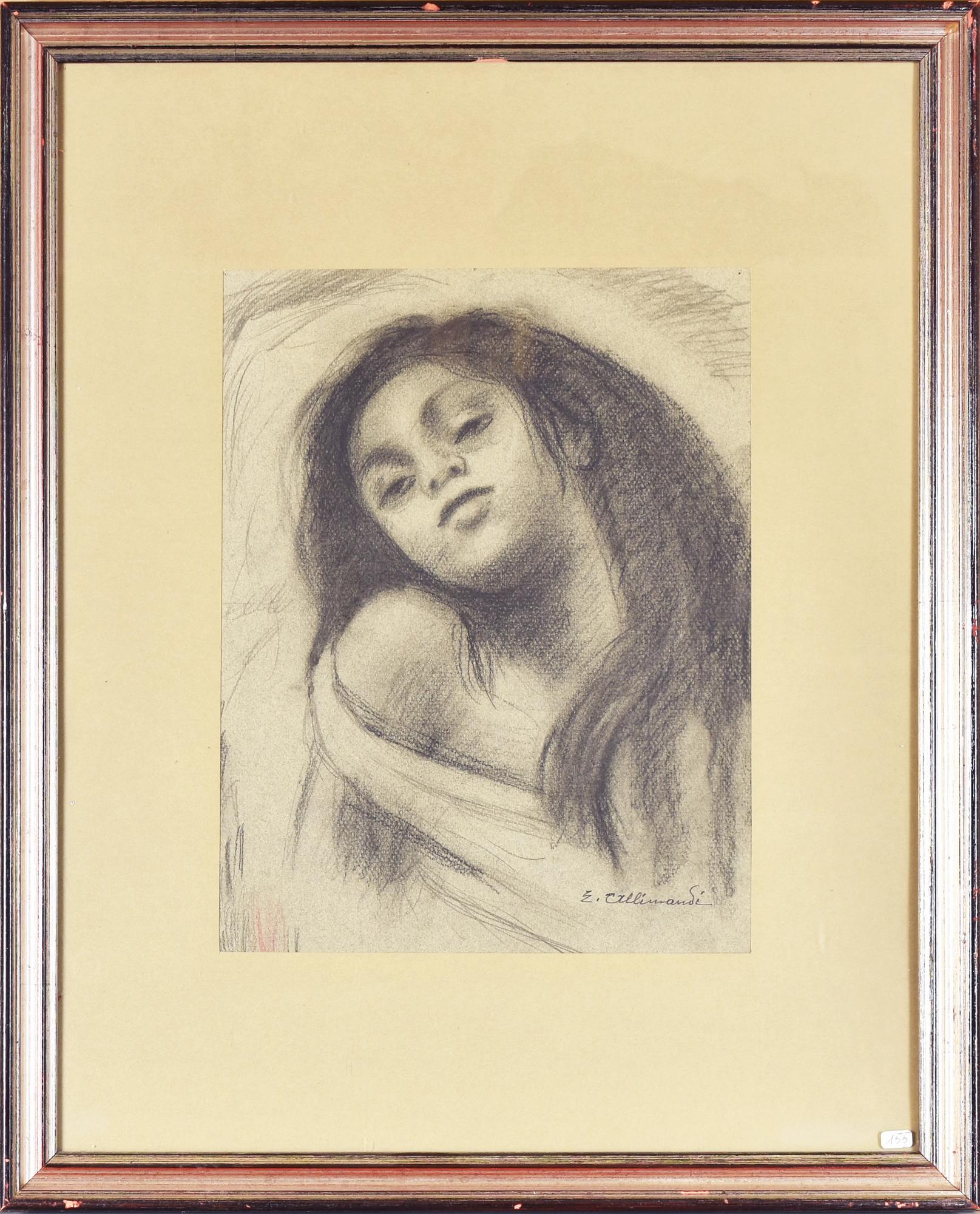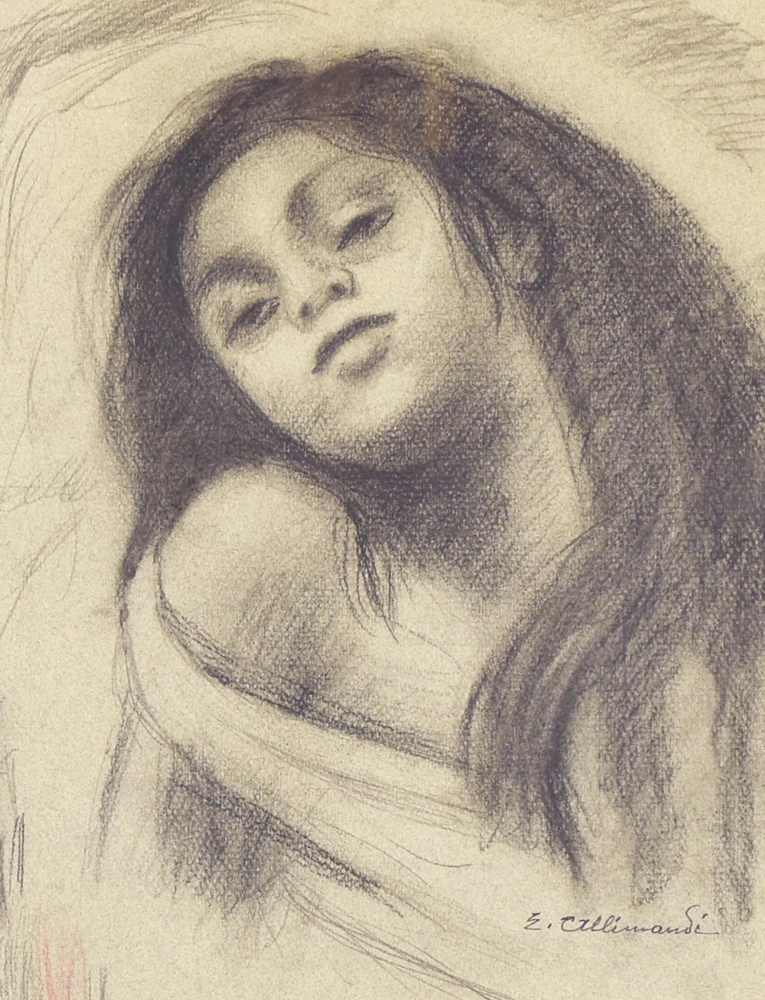 Enrico Allimandi BIMBA ROMANTICA tecnica mista su carta, cm 32x24 firma...