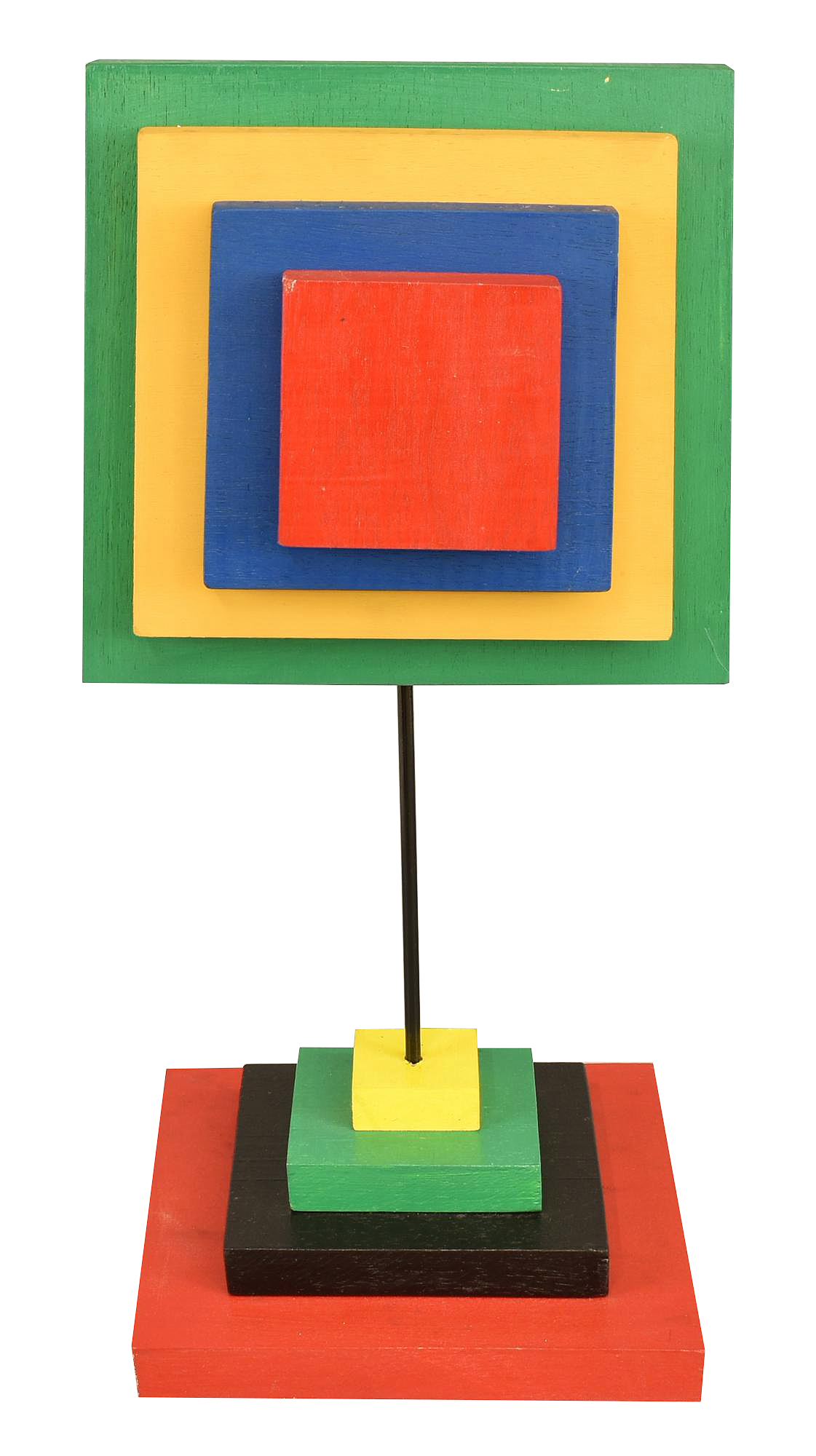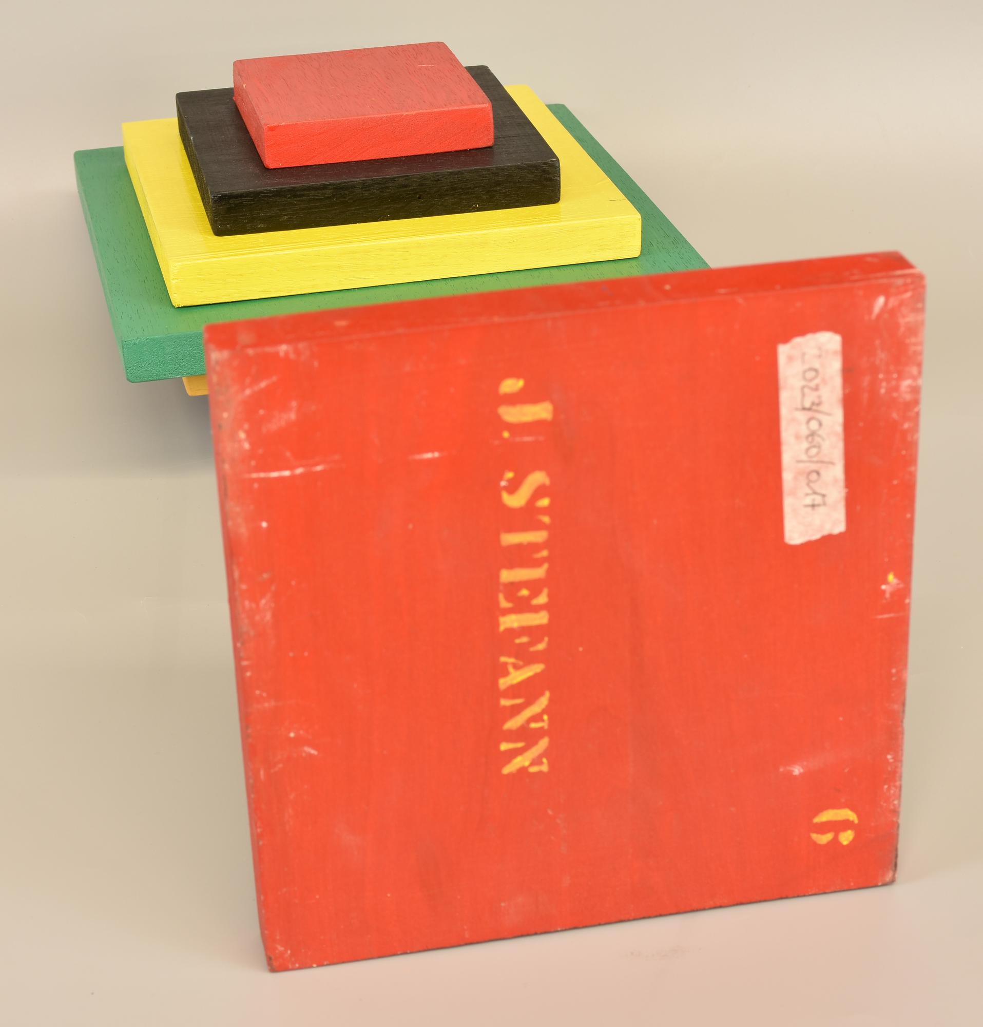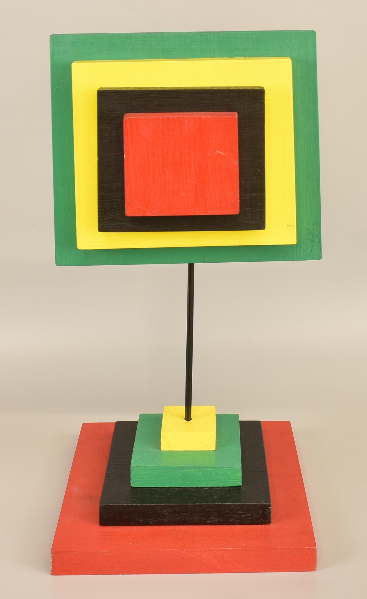 J. Stefann COMPOSIZIONE GEOMETRICA scultura in legno dipinto, cm 51x22x22...