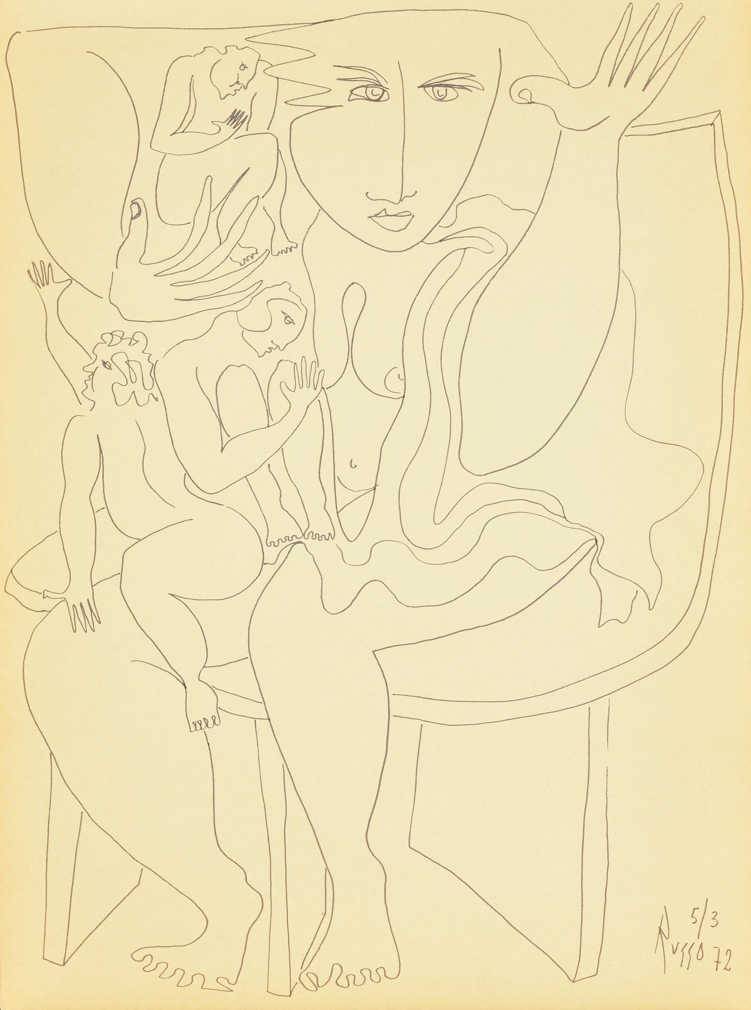 Russo DONNA SEDUTA pennarello su carta, cm 40x30 firma e data eseguito nel 1972