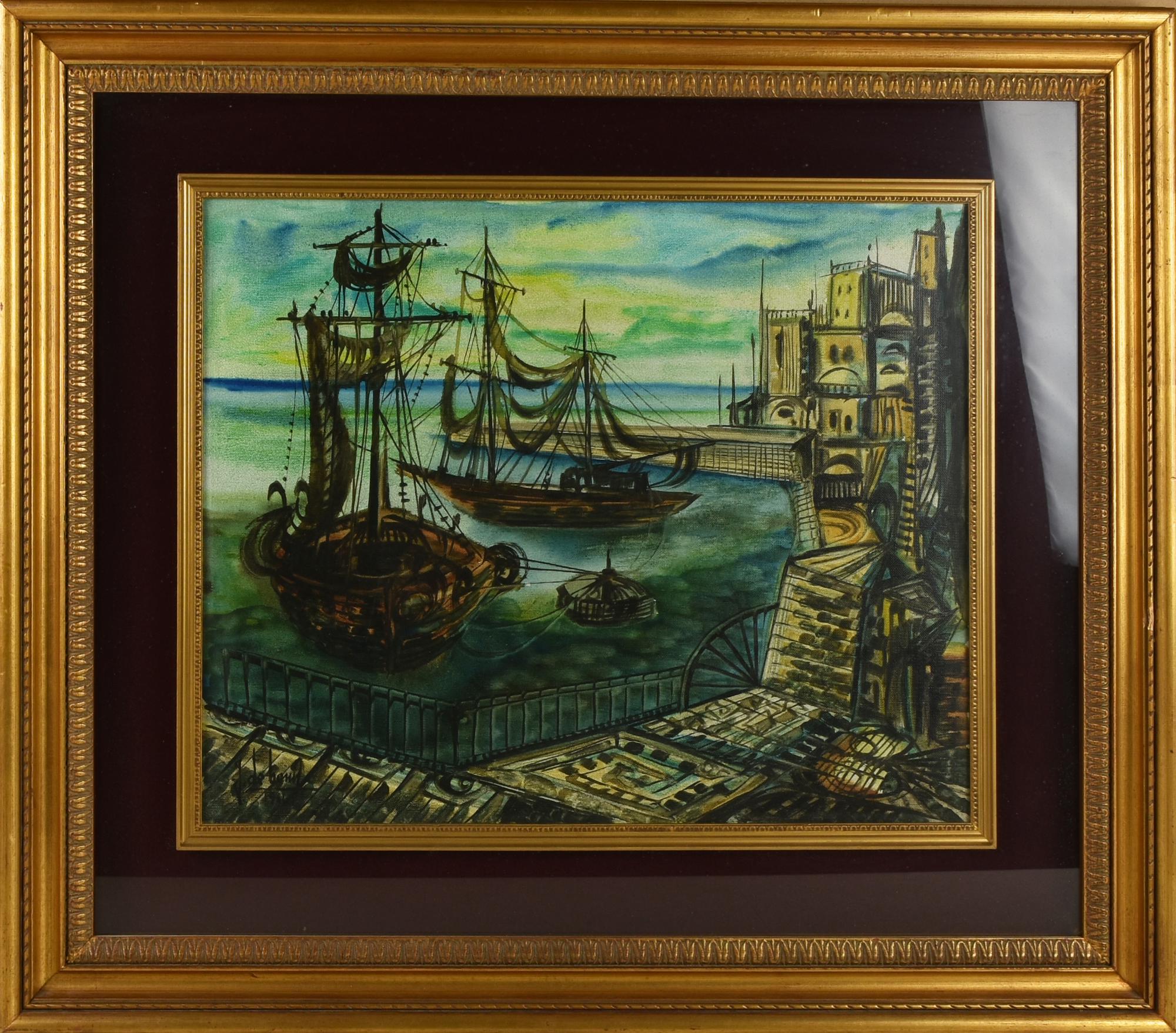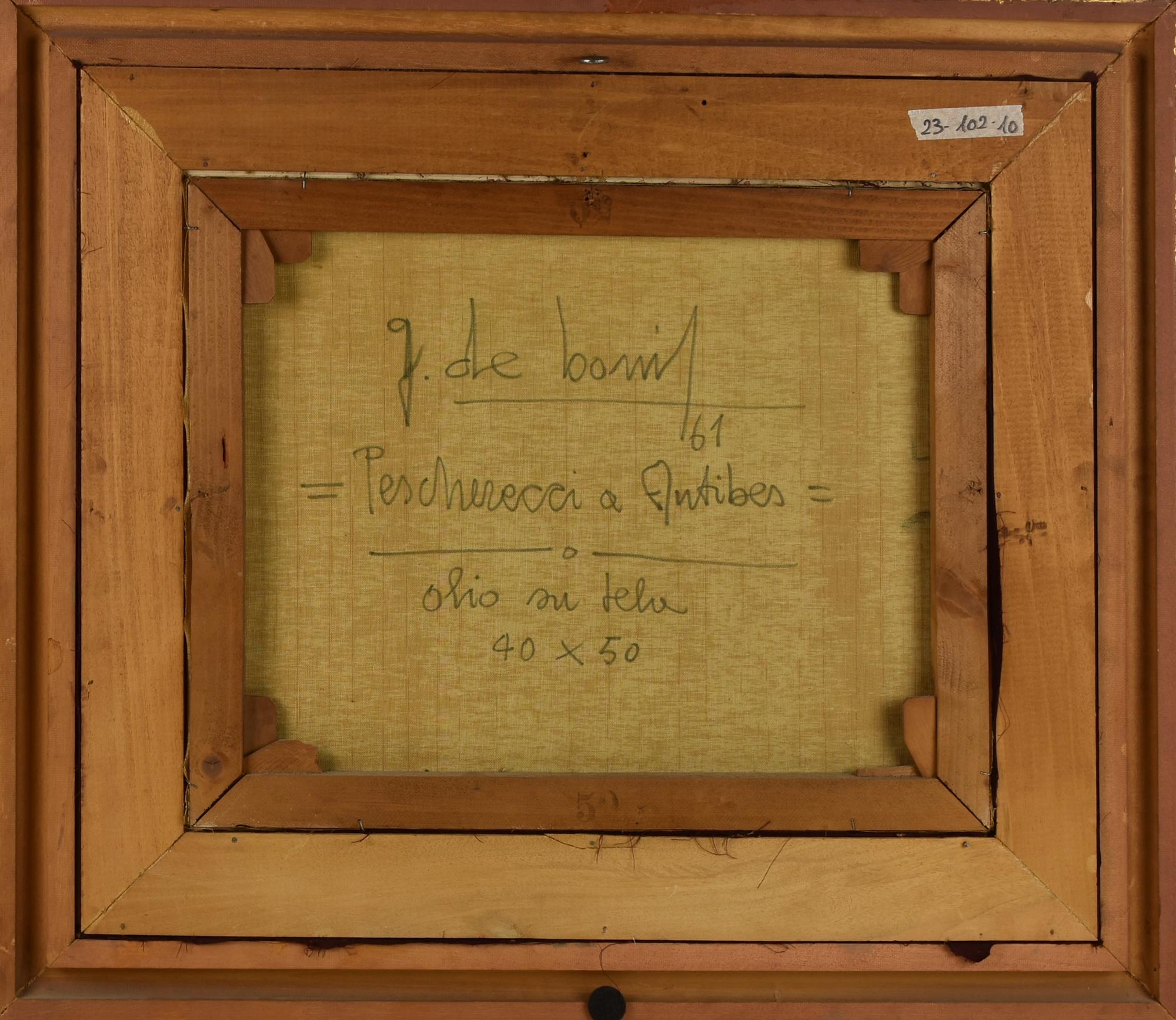 G. De Bonis PESCHERECCI AD ANTIBES, 1961 olio su tela, cm 40x50 firma sul...