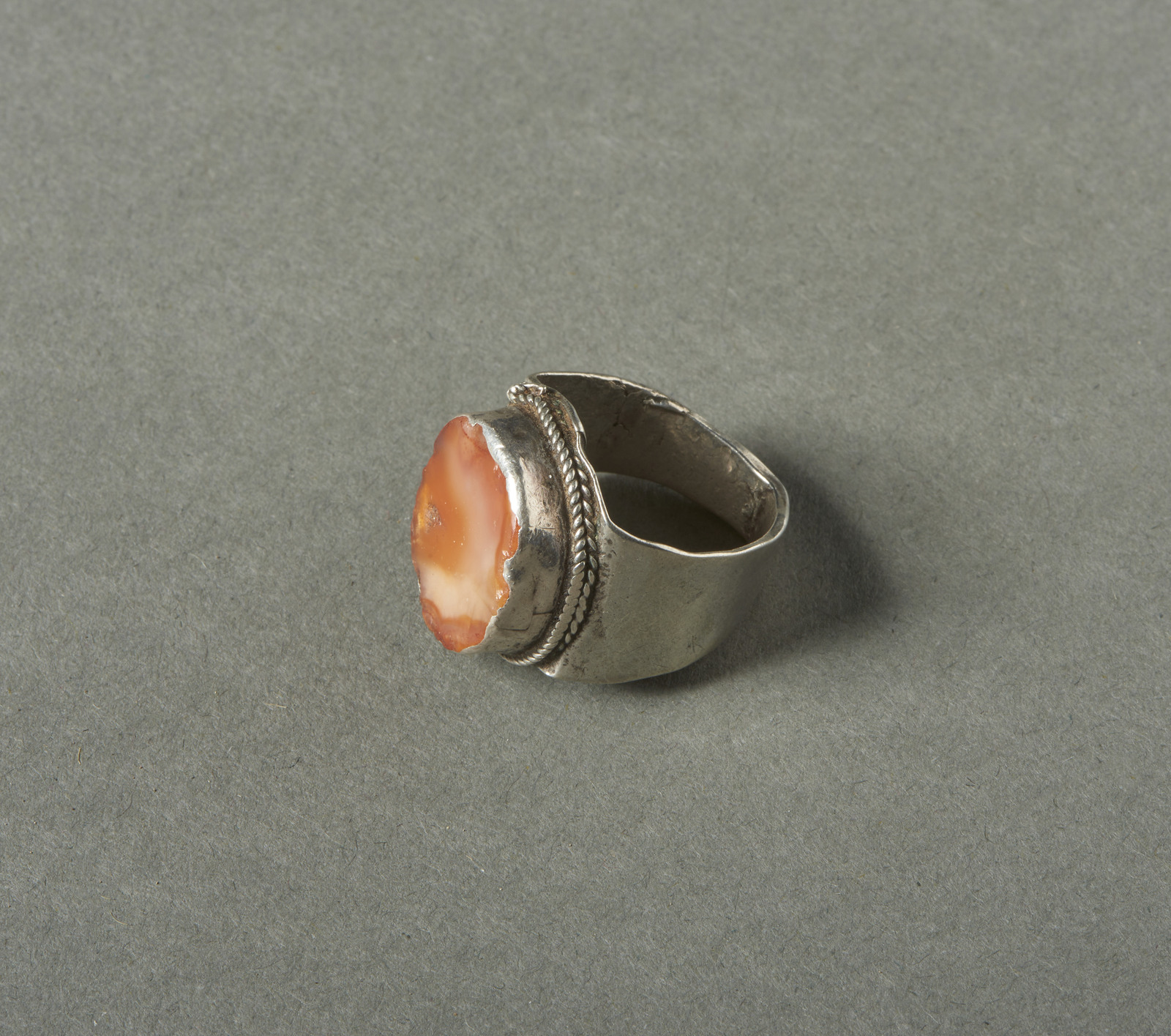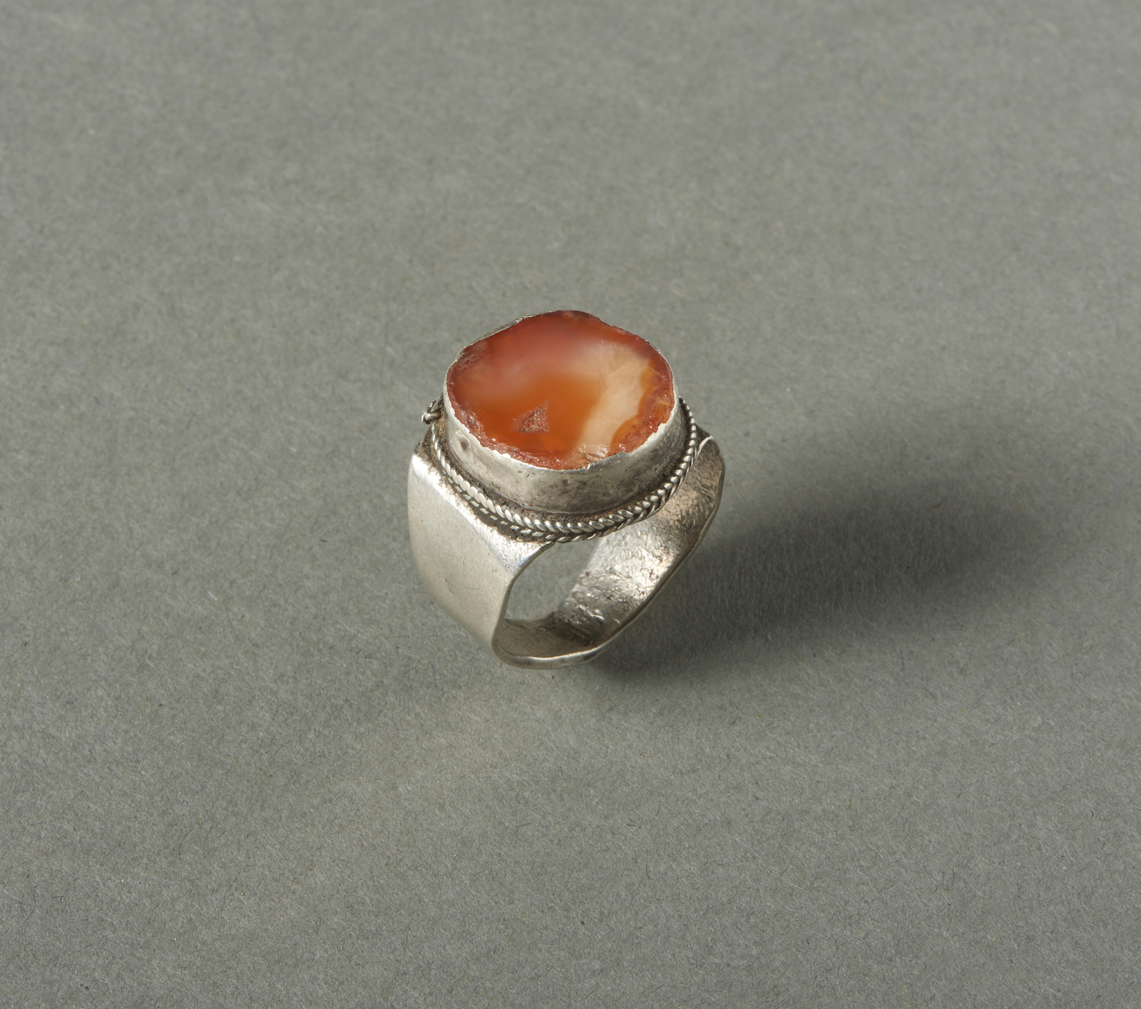 Arte Islamica - Afghanistan. Anello in argento e corniola. Segni d'uso. .