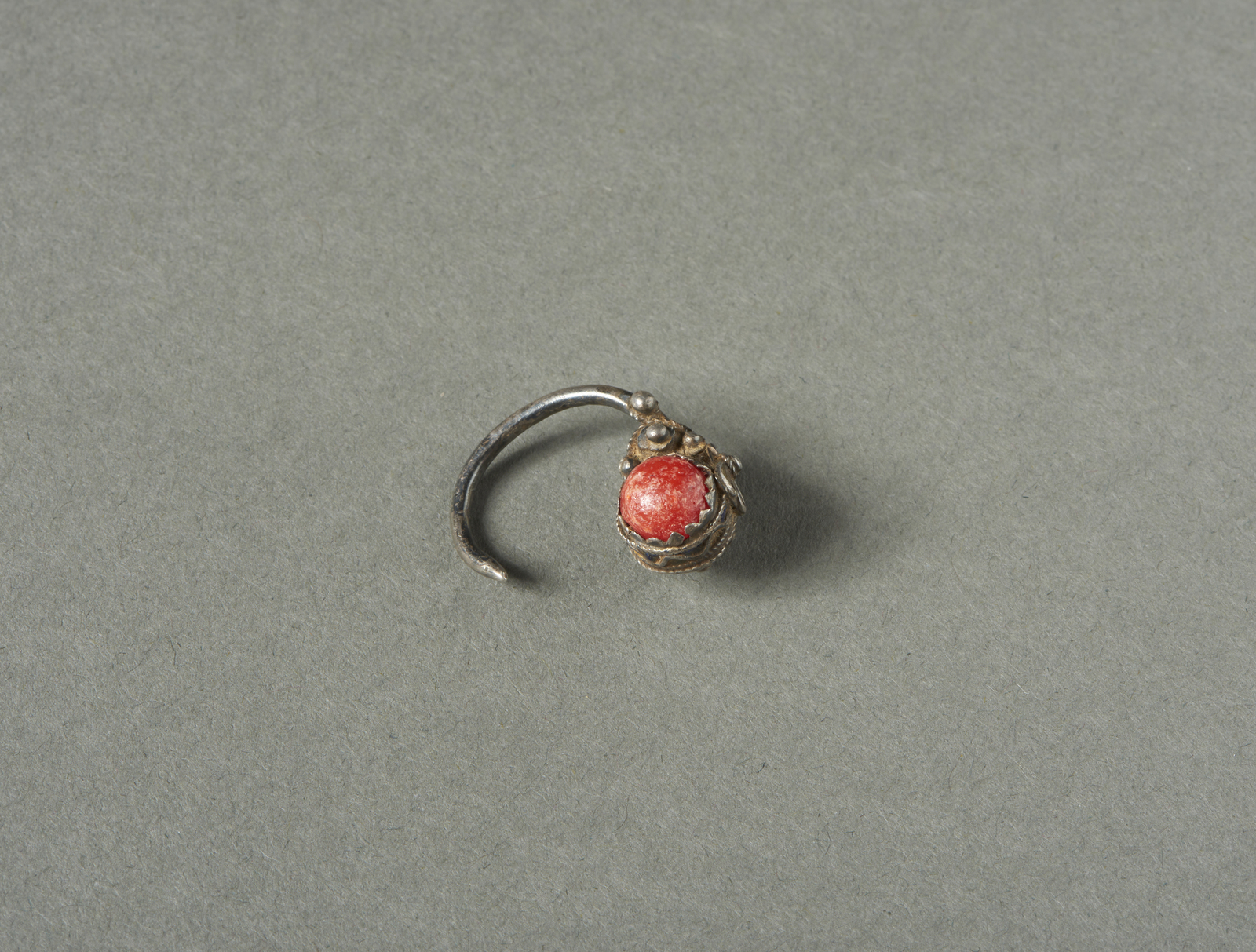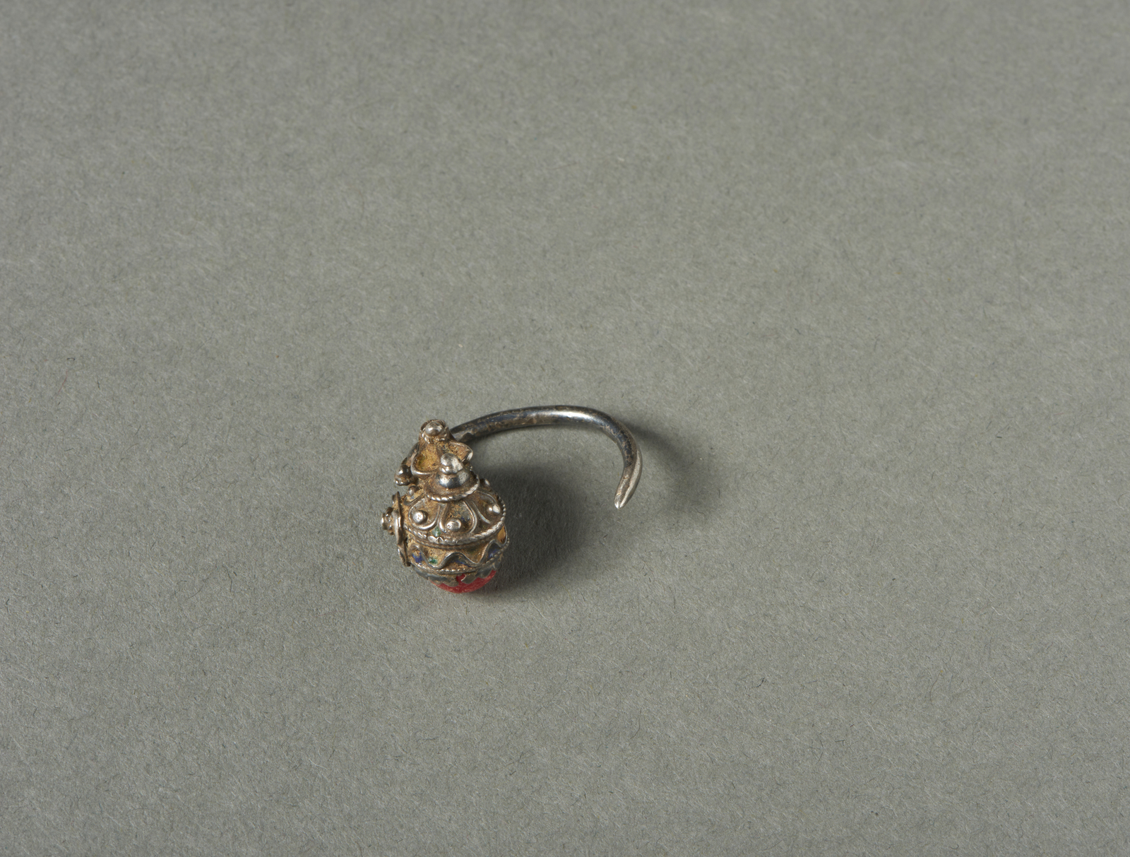Arte Tibetana - Tibet. Orecchino singolo. Argento, pasta vitrea e smalti. Segni d'uso. .