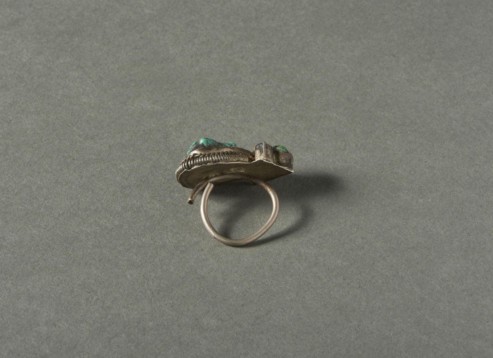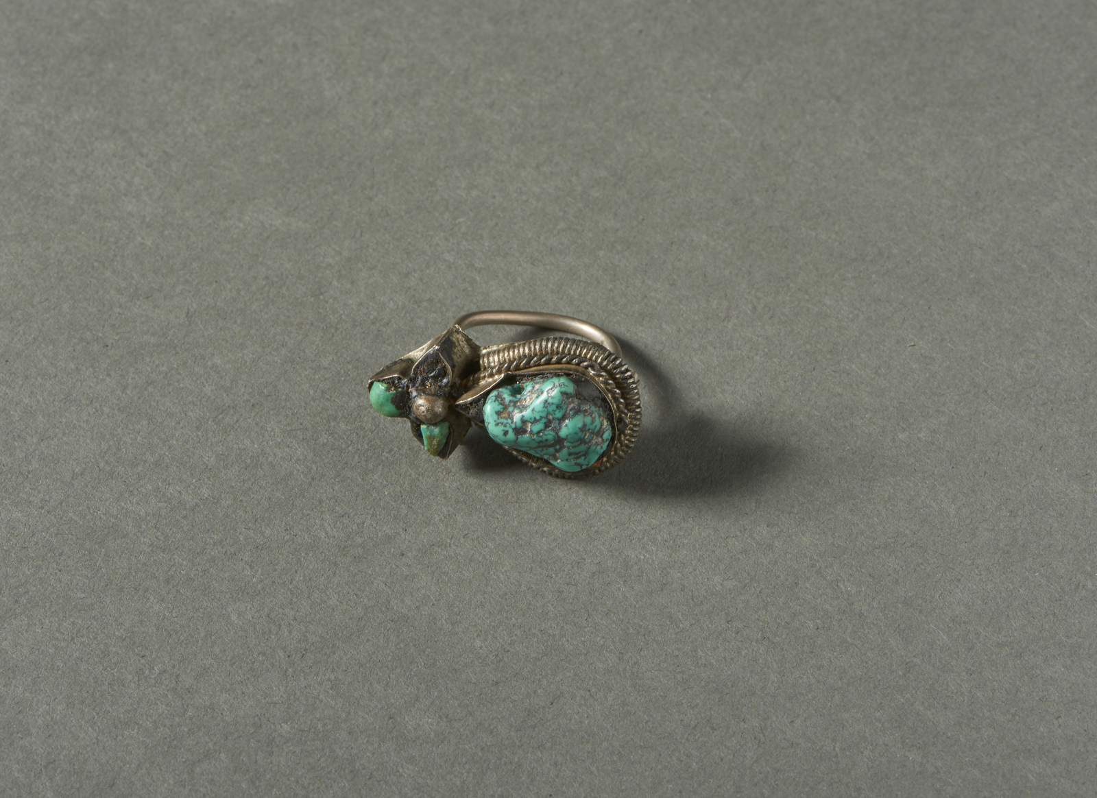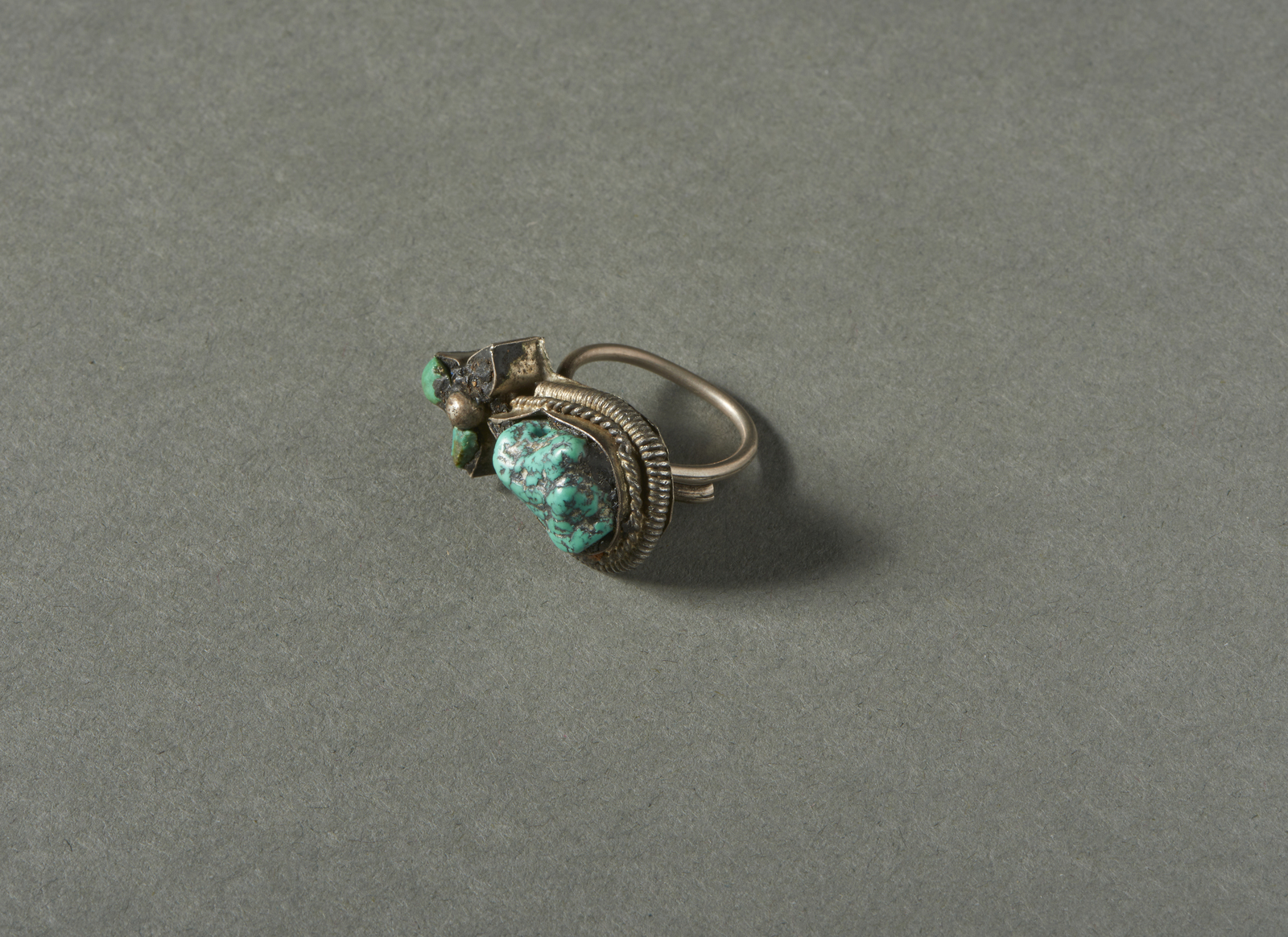 Arte Tibetana - Tibet. Anello in argento con turchese e pece. Difetti visibili e segni d'uso. .