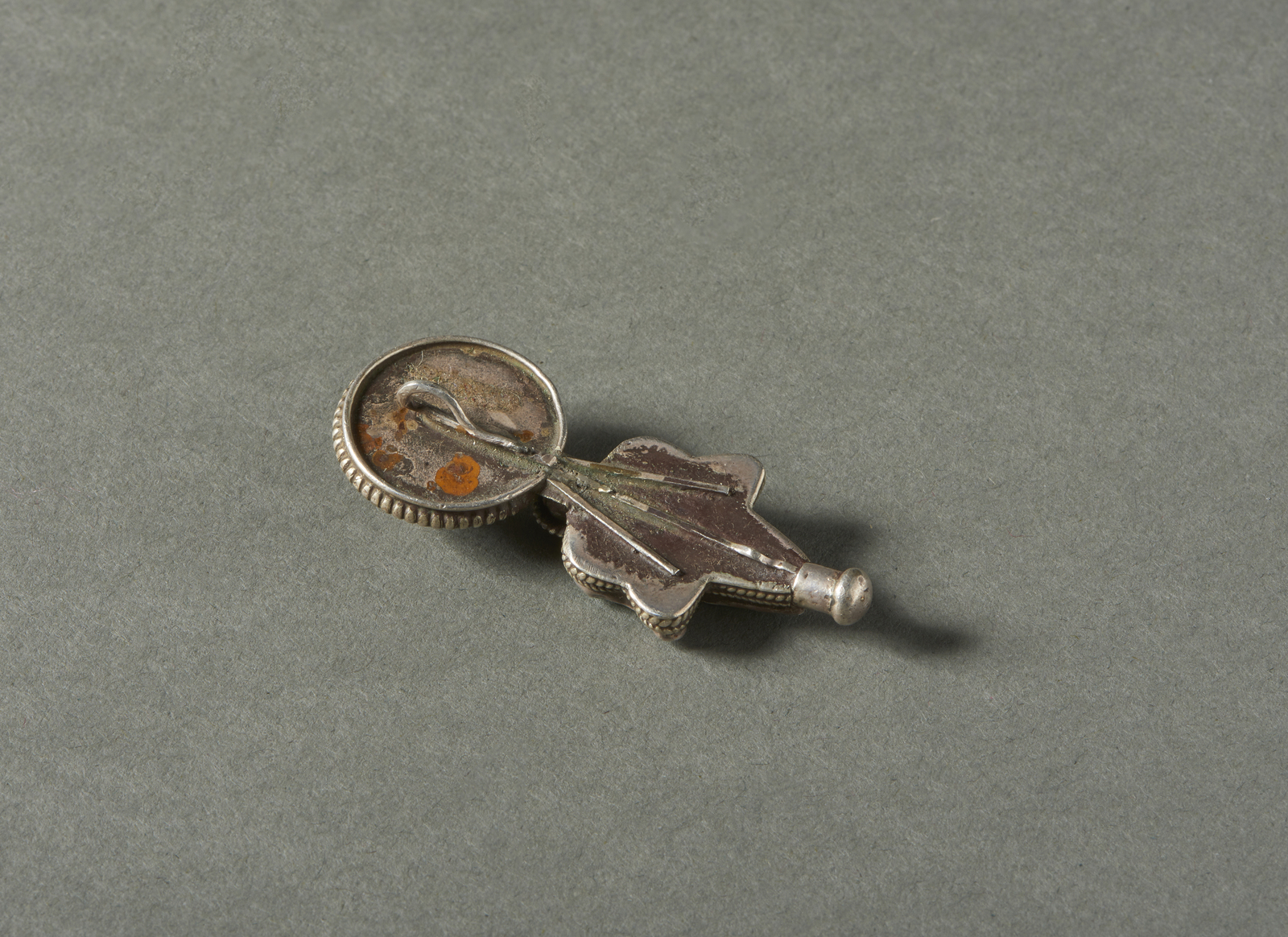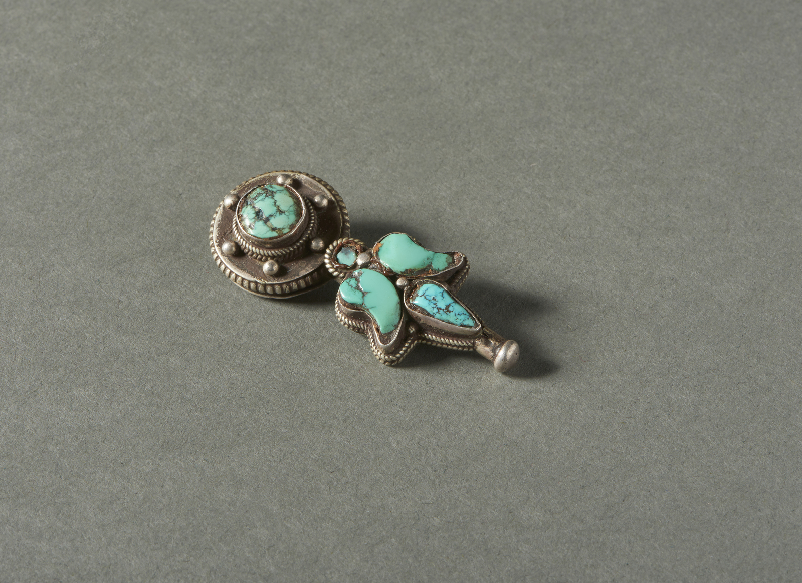 Arte Tibetana - Tibet. Orecchino in argento, turchesi e pece. Difetti visibili e segni d'uso. .