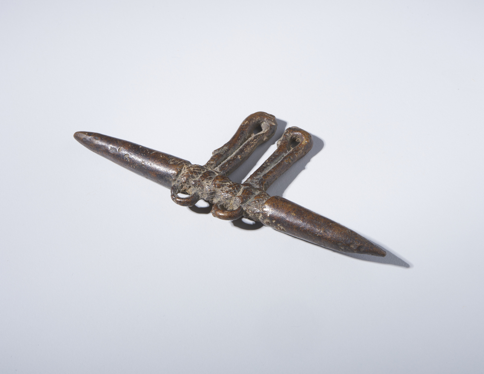 Arte africana - Lobi, Burkina Faso. Ornamento da collo in bronzo. In patina e con evidenti segni d'uso.