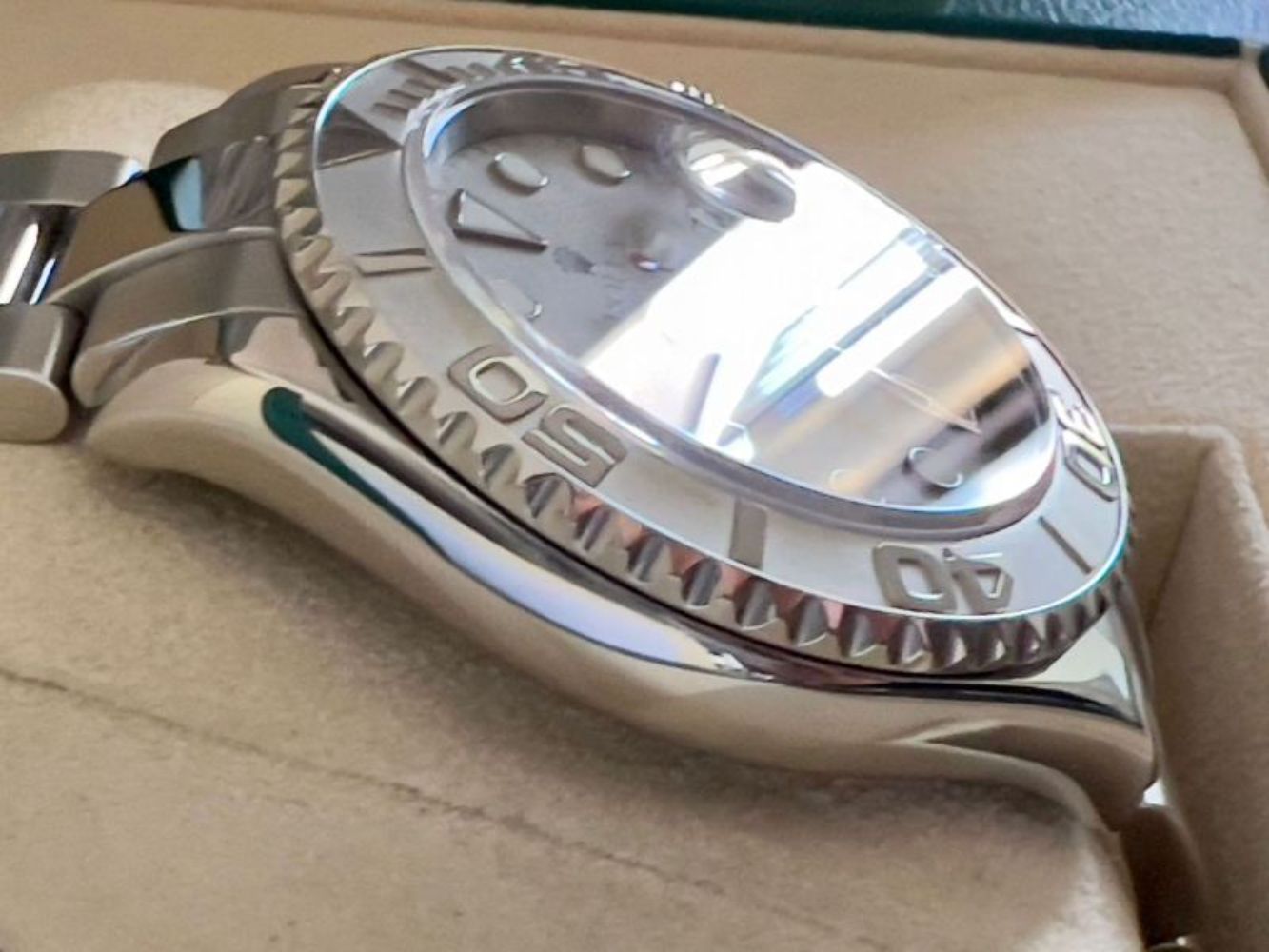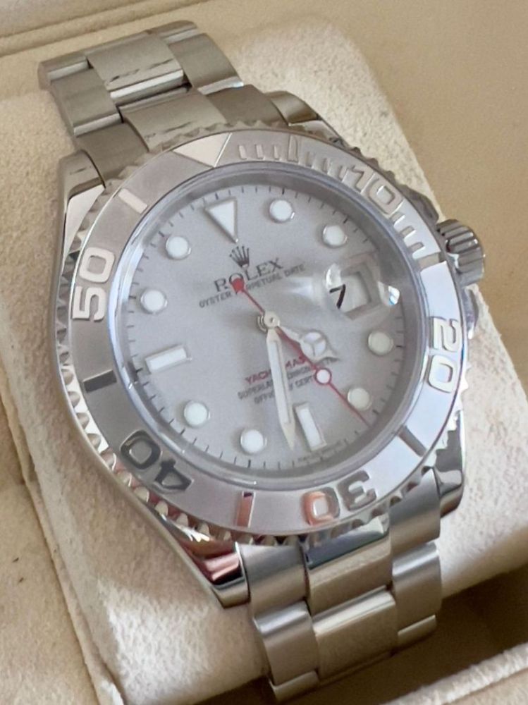 Marca RolexModello (Orologio) Yacht-Master 40 Numero di referenza 16622 Carica Automatico Materiale della cassa Acciaio Materiale cinturino Acciaio Anno di produzione 2004/2006 Condizione Ottimo Corredo Con scatola di fornitura e documenti originali Carica Automatico Materiale della cassa Acciaio Diametro 40 mm Impermeabile 10 ATM Materiale lunetta Platino Vetro zaffiro Quadrante Argento
