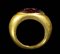 A GREEK LATE HELLENISTIC GARNET INTAGLIO SET IN A GOLD RING. ATHENA.