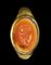 A ROMAN AGATE INTAGLIO SET IN A GOLD RING. HEAD OF APOLLO.