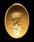 With rounded hoop boardering upwards onto an oval bezel set with an agate intaglio. Head of Apollo facing left. He is characterized by young features, curly locks ornated with a laurel wreath. Letters in the field. Wear marks.
