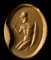 Shown kneeled to the right with crested helmet and shield in the act of making a devotion (probably). Chip on the edge. Military votive scene. Wear marks.