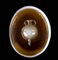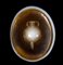 In the center, an amphora with a rounded body, with an elongated tip at the bottom and rounded handles. The body is perfectly spherical and mirror polished. Beautiful variety of three-layered agate, characterized by an elegant gradient between the upper honey brown layer and the intermediate white one; the last one is dark brown. The back of this large gem, with a truncated cone profile, is deeply concave in the center, probably to lighten its weight and increase its brightness in transparency. In fact, the thickness between the excavation of the belly of the amphora and the back seems minimal. The model and the execution style seem to be of Greek hand. Light wear marks.