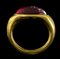 A FINE ROMAN GOLD RING WITH A GARNET INTAGLIO. SCENE OF METAMORPHOSIS.