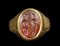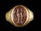 A ROMAN CARNELIAN INTAGLIO SET IN A GOLD RING. ASCLEPIUS AND HYGIEIA