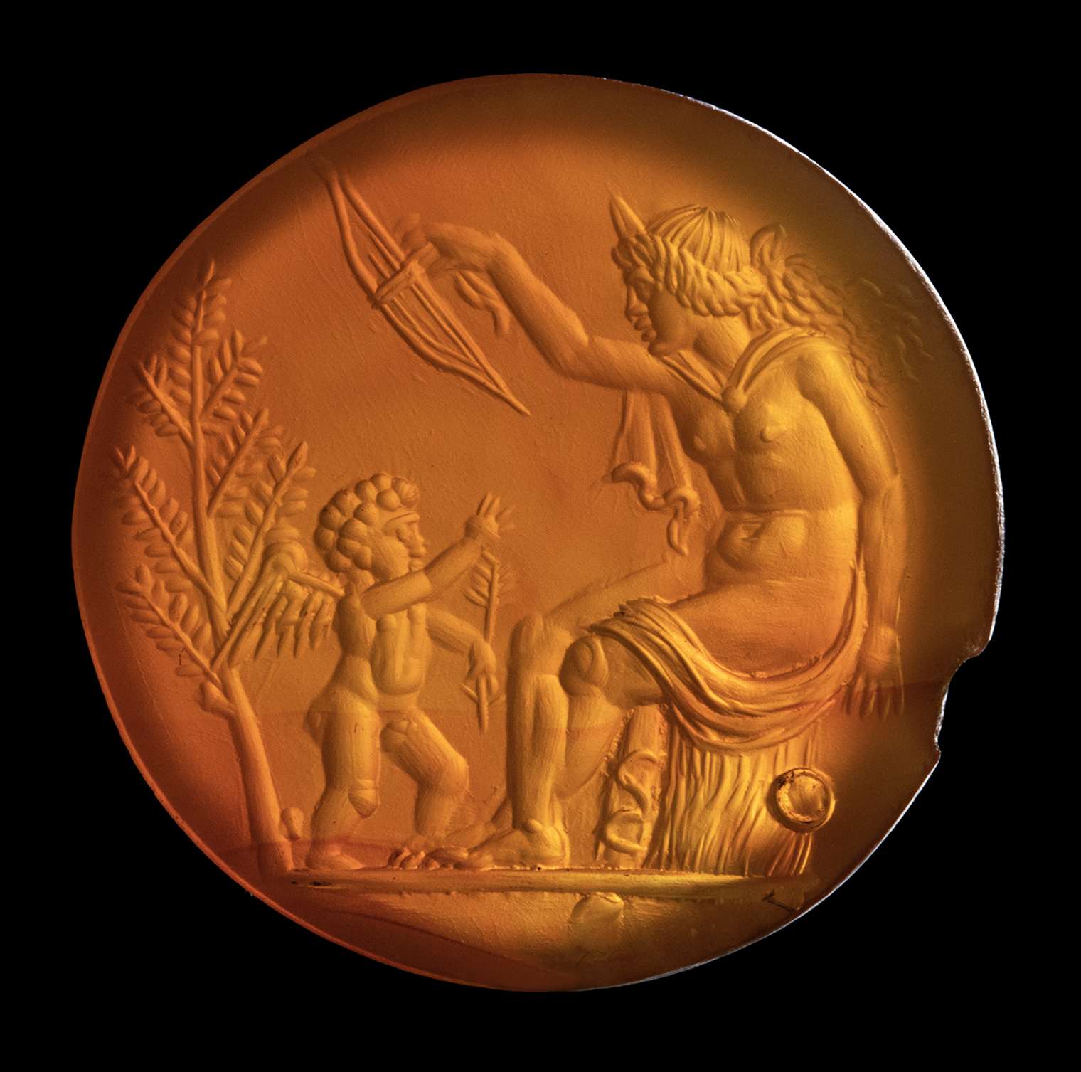 A POSTCLASSICAL CARNELIAN INTAGLIO. VENUS PLAYING WITH EROS.