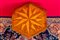 realizzato con piano esagonale decorato con rosa dei venti intarsiata, sostegno a quattro elementi, base ottagonale