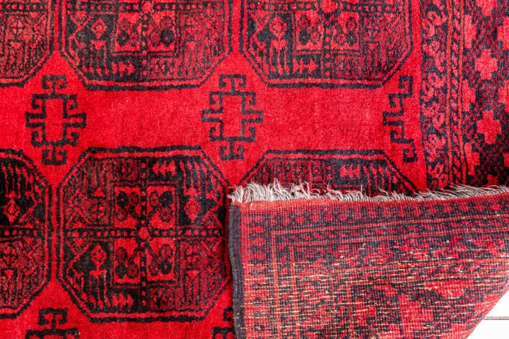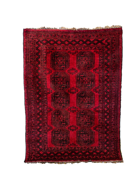 campo centrato da medaglioni ottagonali nei toni del nero e del porpora