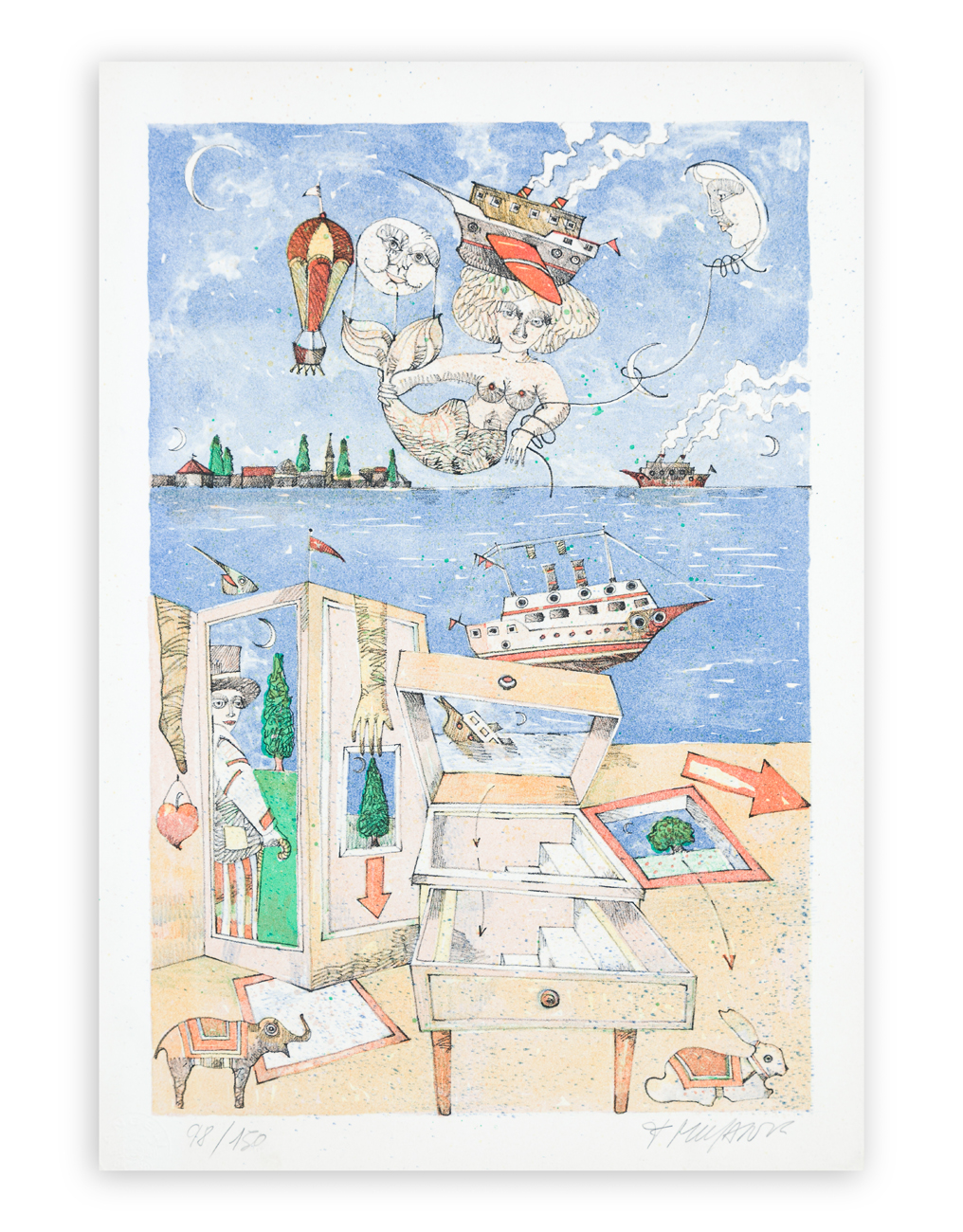 Firma e numerazione (Esemplare 98/150) a matita al fronte