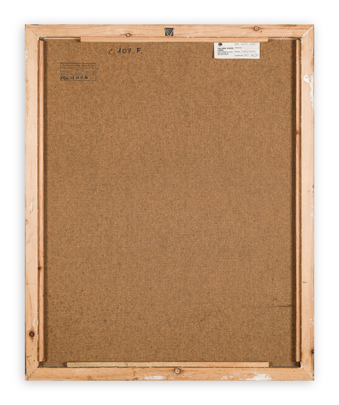 Etichetta e timbri della Galleria d'Arte Lanza (VB) al retro