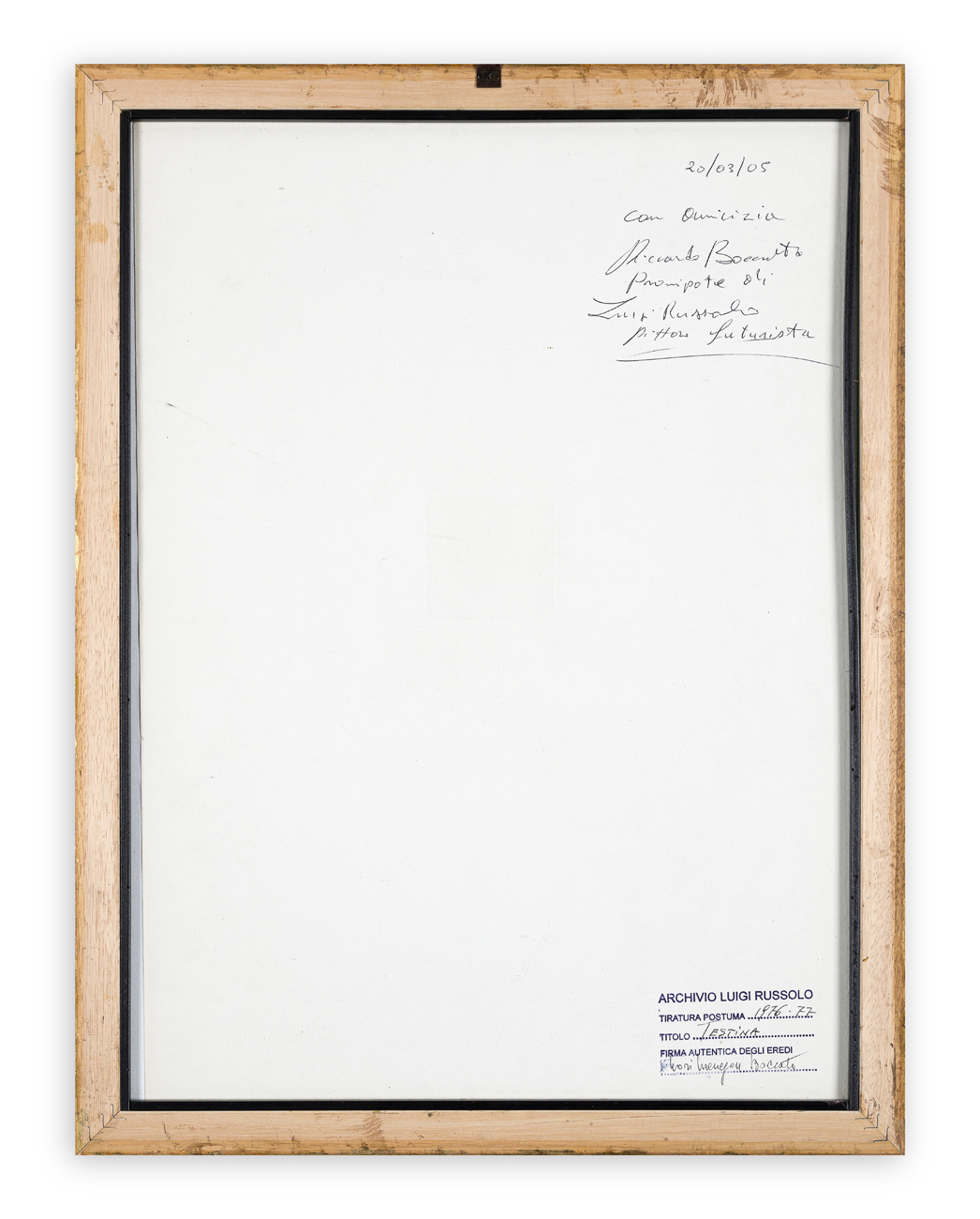 Timbro dell'Archivio Luigi Russolo e firma per autentica degli Eredi Russolo