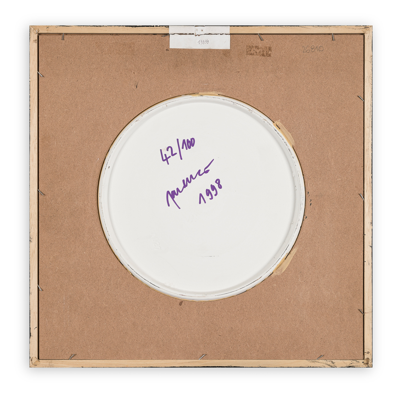Firma, datazione e numerazione (Esemplare 42/100) a pennarello al retro