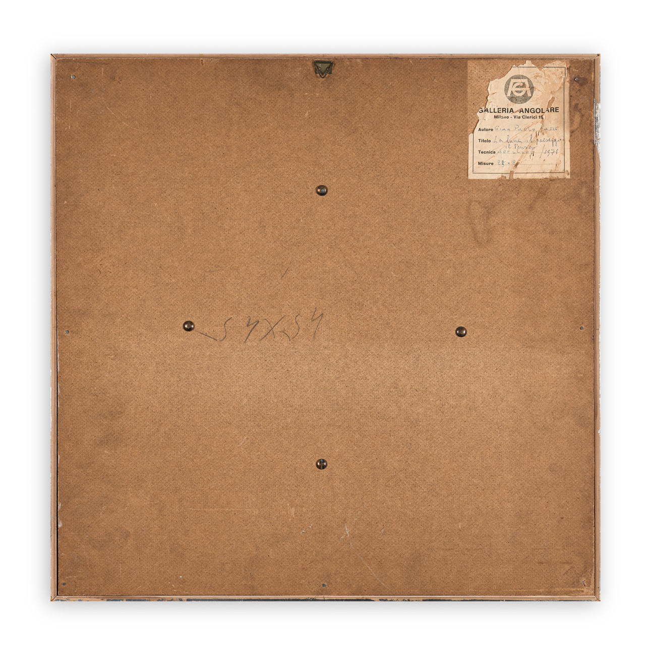Etichetta della Galleria Angolare (MI) al retro parzialmente abrasa