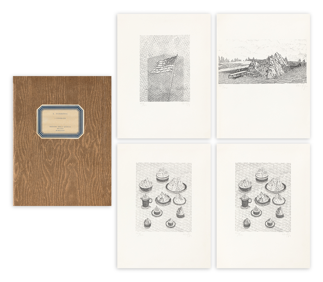 Cartella contenente 4 litografie di Elisabeth Scherffig, ciascuna recante firma e numerazione (Esemplari XXIV/XXV) a matita al fronte