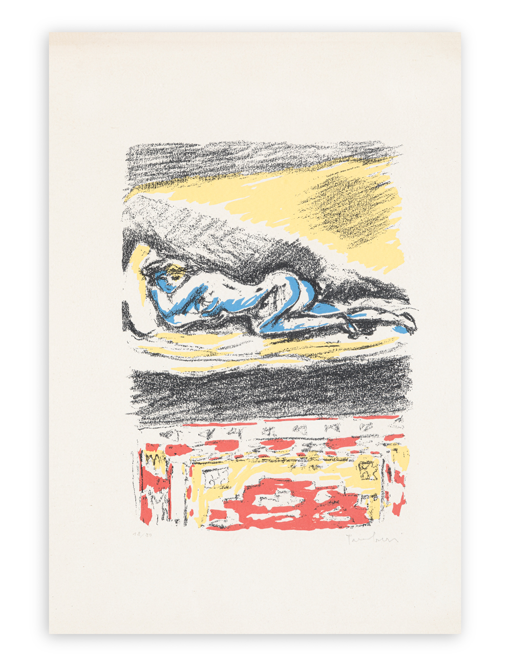 Firma e numerazione (Esemplare 18/50) a matita al fronte