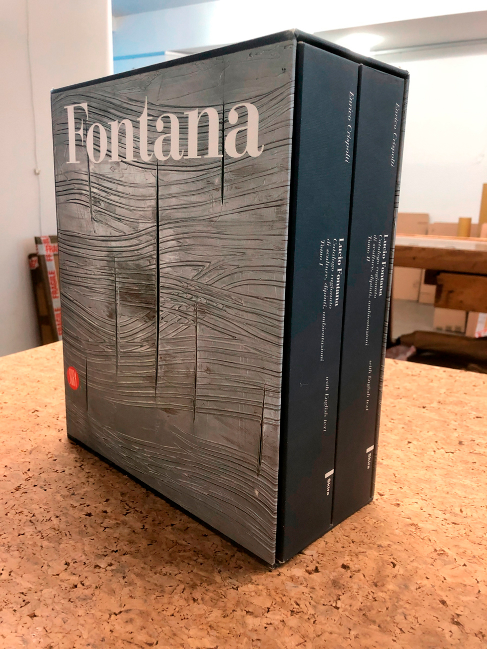 Lotto unico di 2 cataloghi ragionati di sculture, dipinti, ambientazioni di Lucio Fontana (Catalogo ragionato. Tomo primo e Catalogo ragionato. Tomo secondo), a cura di Enrico Crispolti