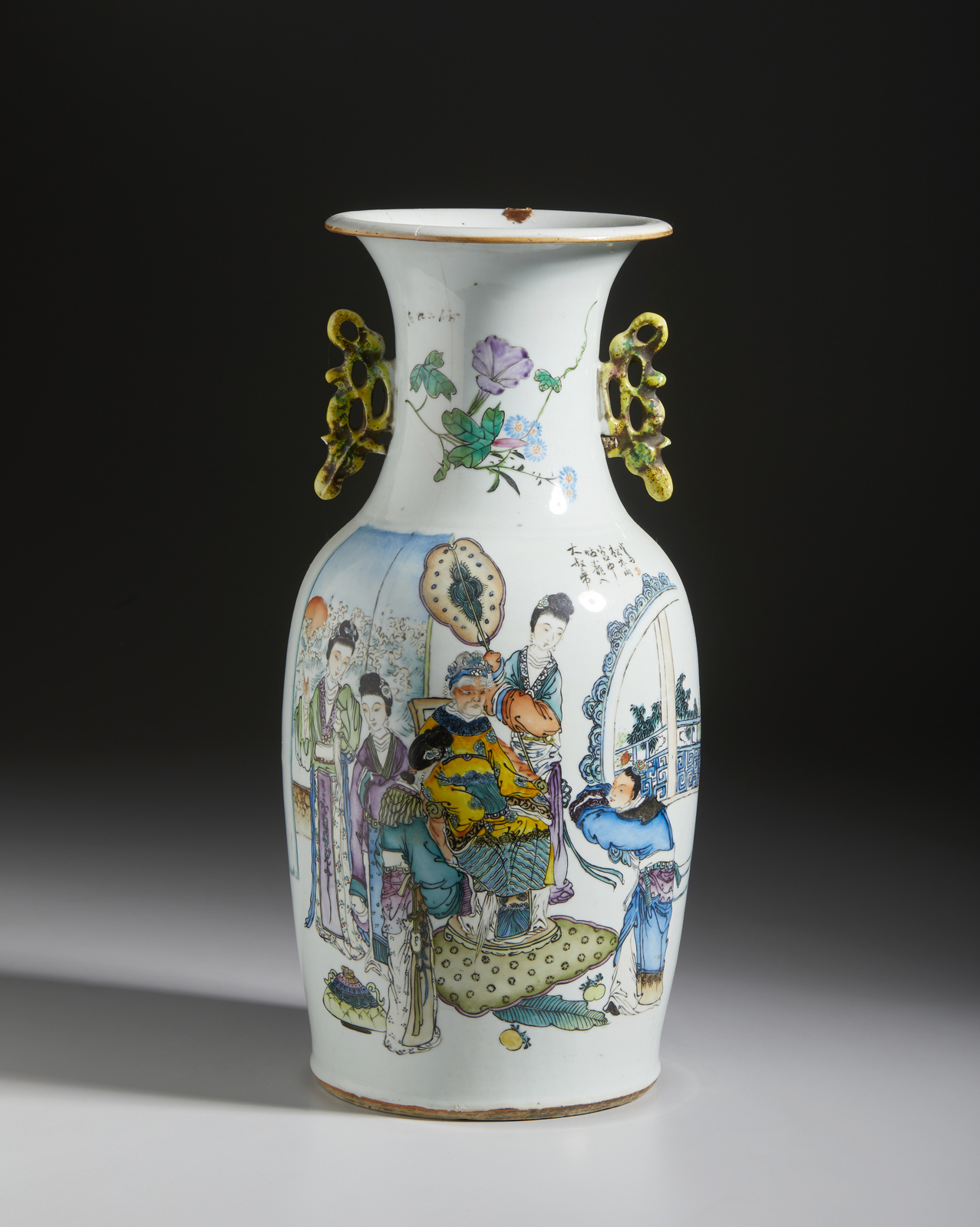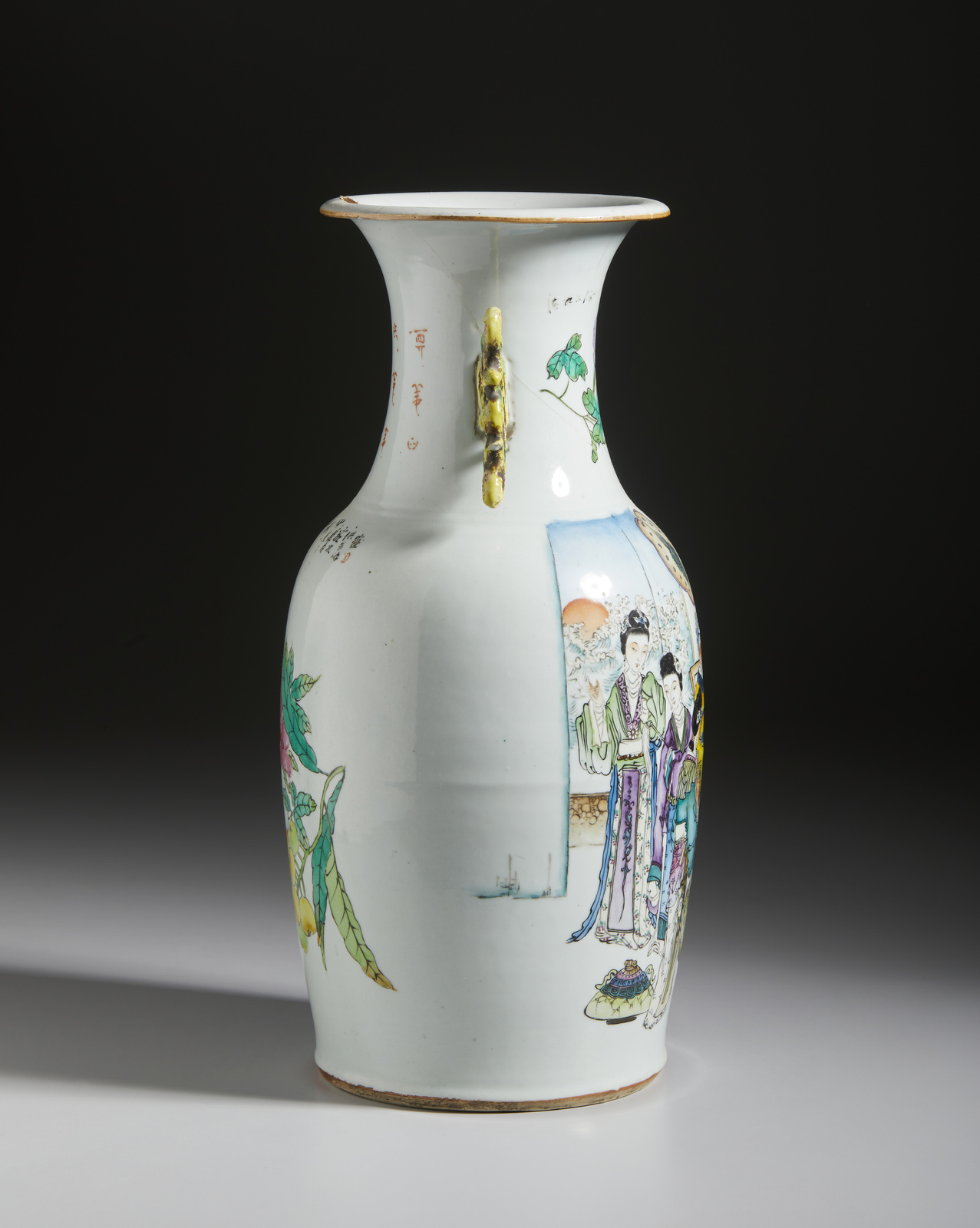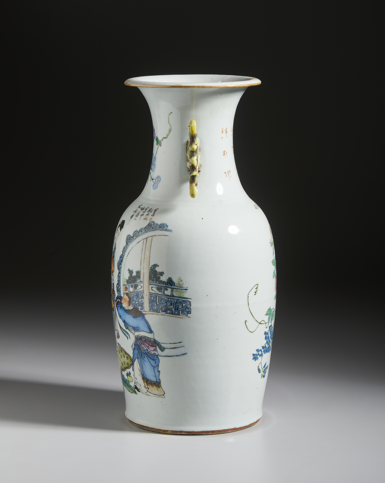 Arte Cinese - Vaso a balaustro decorato con scena cortese Cina, periodo Repubblica, inizio XX secolo .