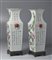 Cina, periodo Repubblica, inizio XX secolo . . Cm 18,30 x 56,00 x 21,00. Coppia di vasi quadrangolari in porcellana decorati nei toni della famiglia rosa con vasi di fiori, peonie ed uccelli su rami. Lunga iscrizione e sigillo sul retro.