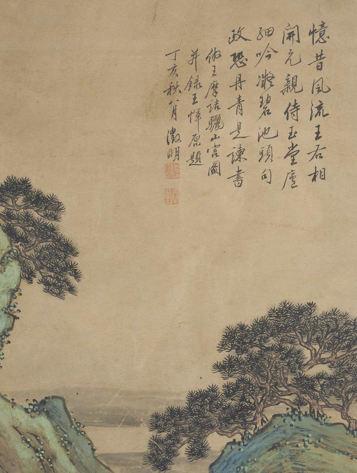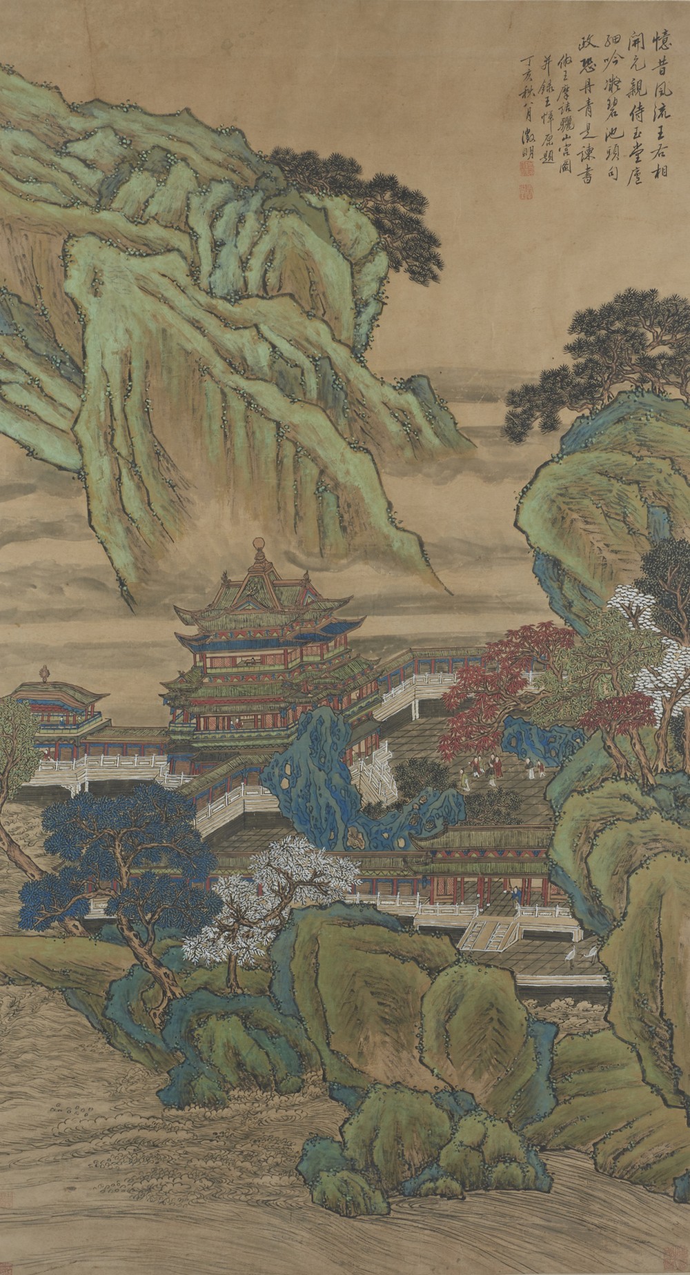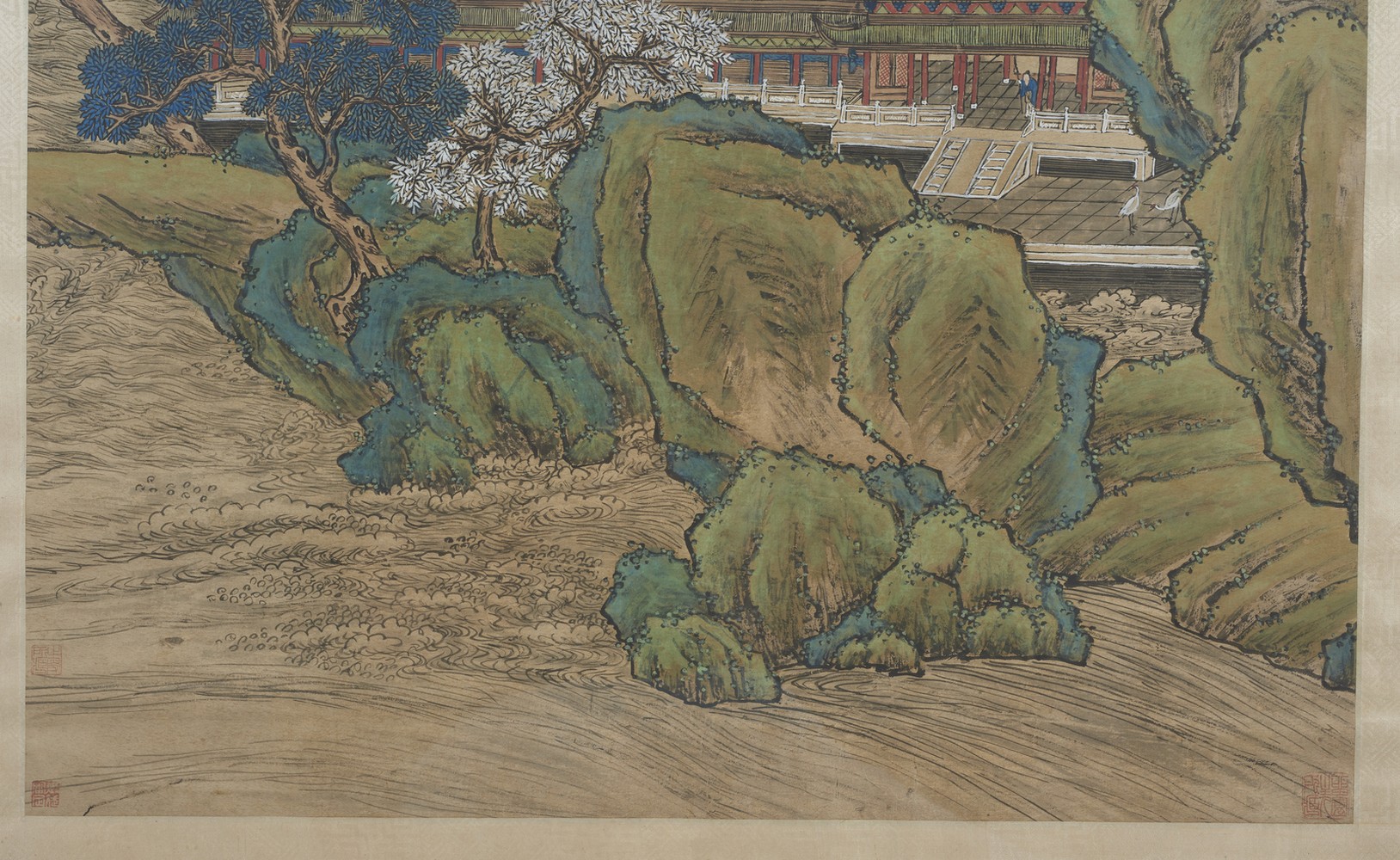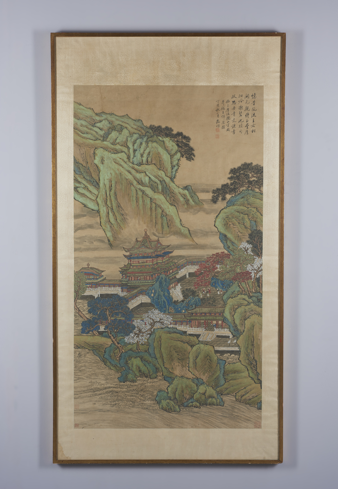 Arte Cinese - Dipinto jiehua con pagode Cina, Qing, XIX secolo .