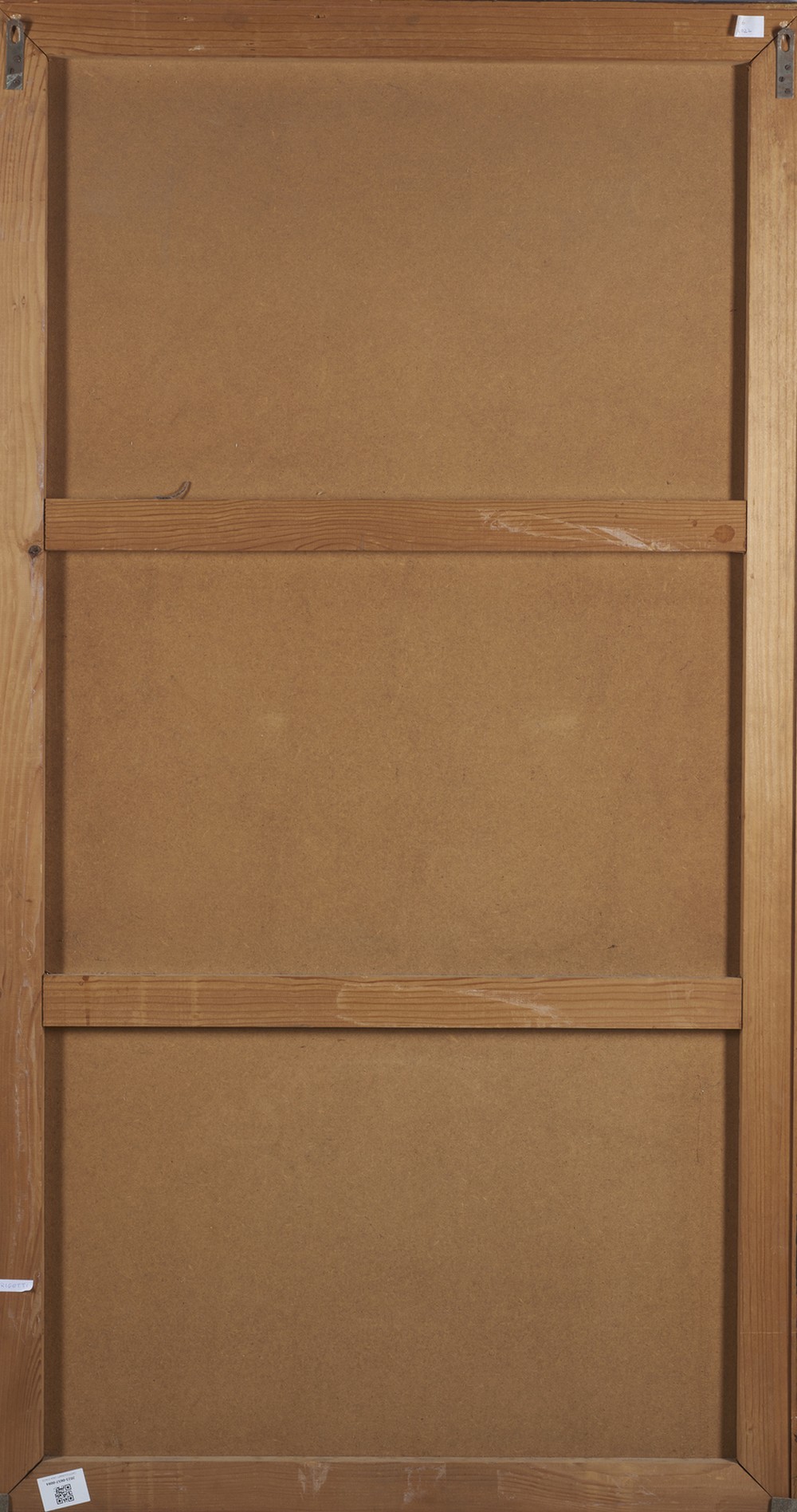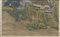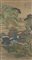 . . Cm 75,50 x 137,00. dipinto a tempera su carta raffigurante paesaggio montano con richi edifici e padiglioni immaginari.