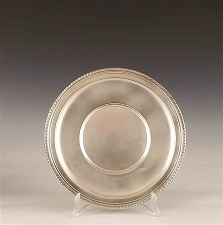 Piatto in argento di forma circolare con profilo godronato, Stati Uniti, fine del XIX secolo, gr. 440, d. cm. 30.